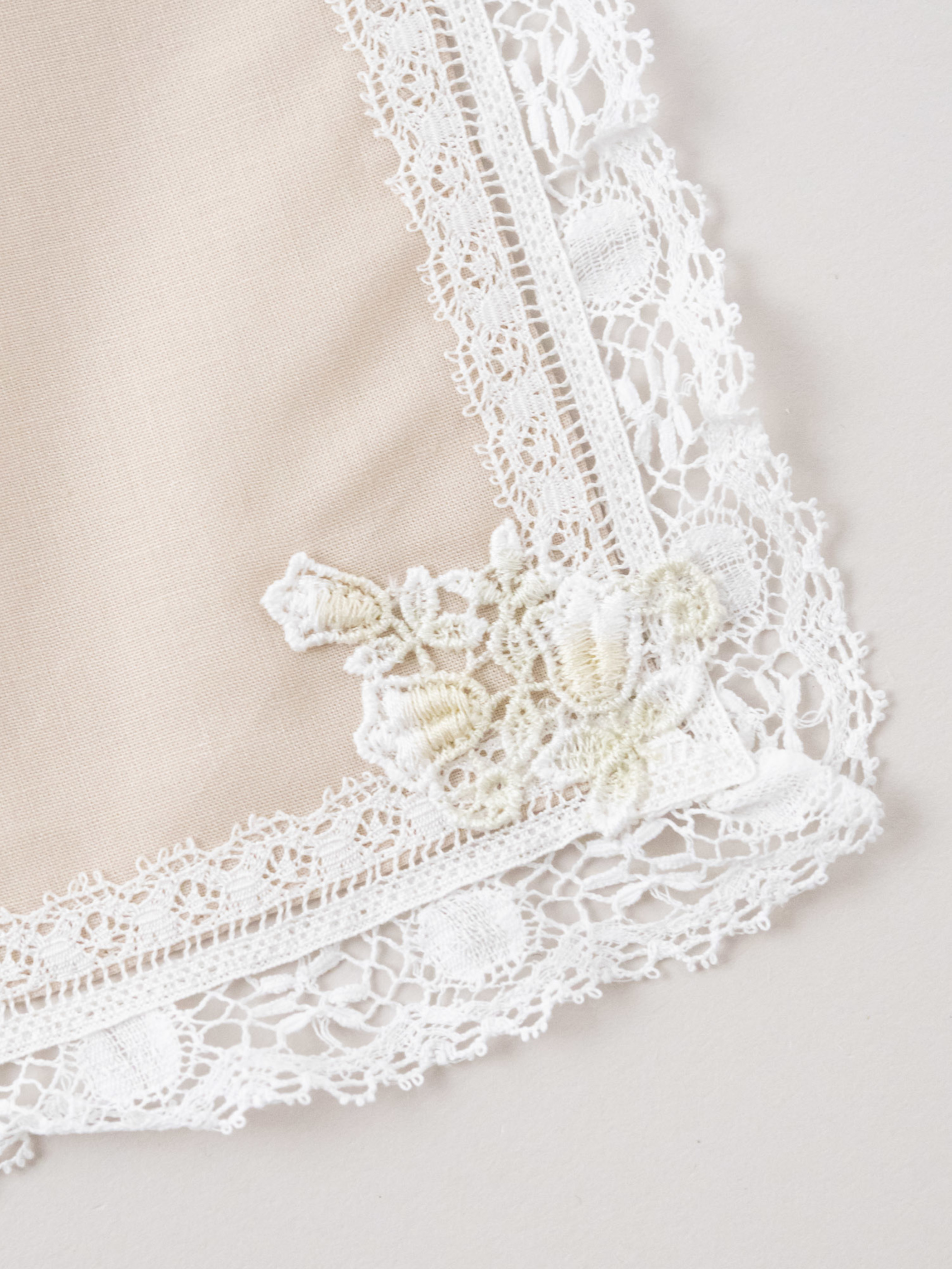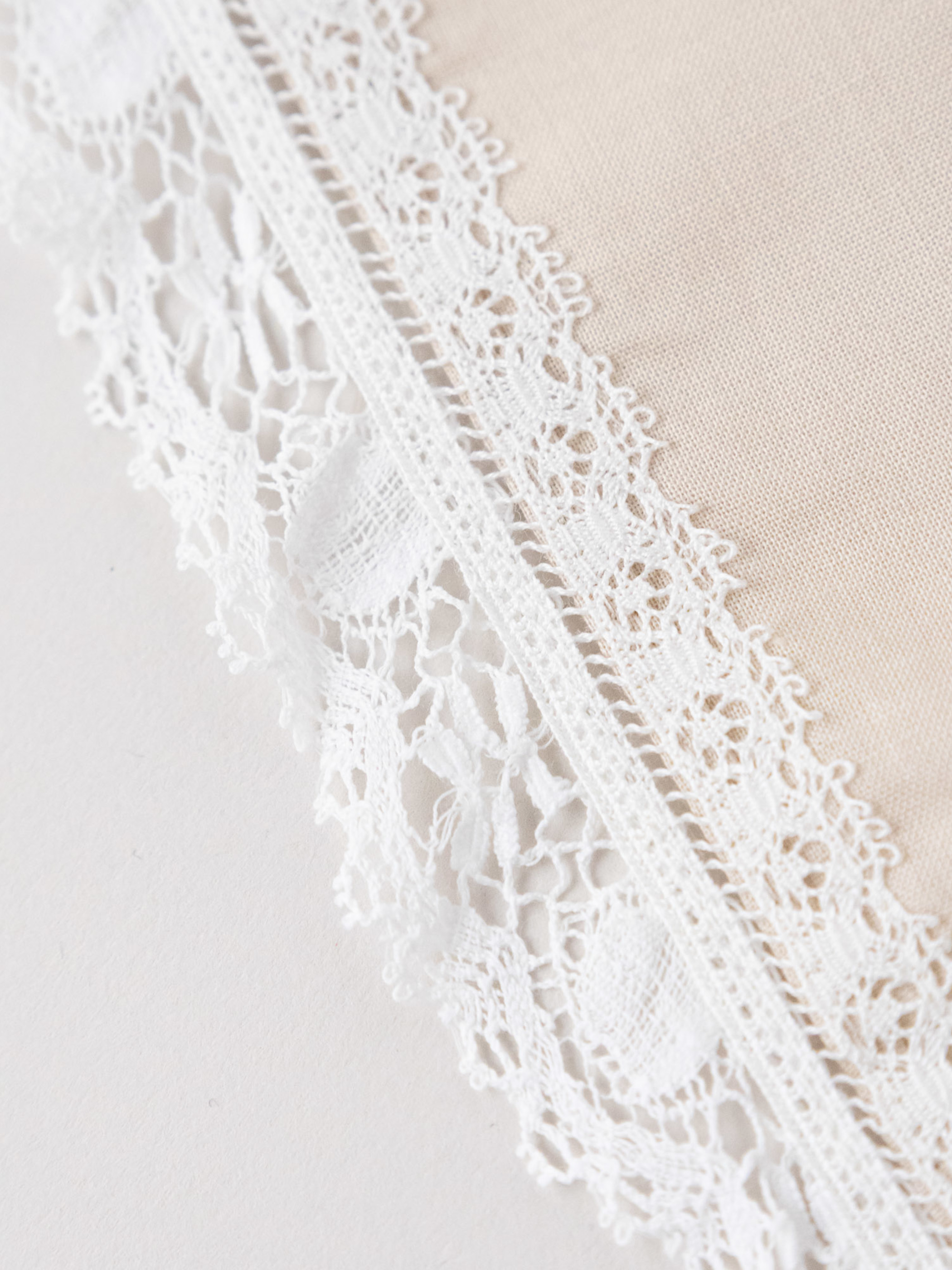 周囲にはボタニカルな雰囲気のトーションレースをあしらい、華やかに仕立て上げました。