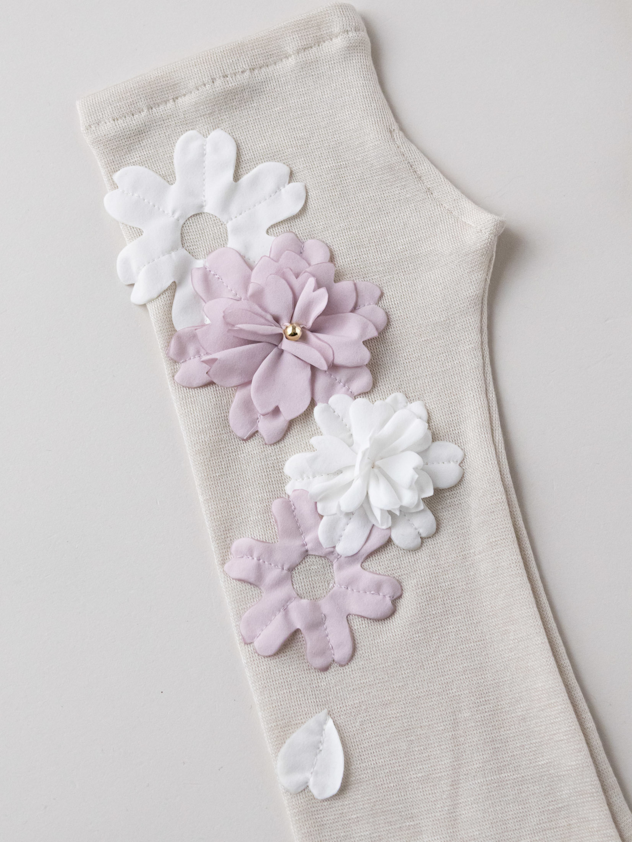 薄手の素材に2配色の「サクラ」を散らし、上品に仕上げました。