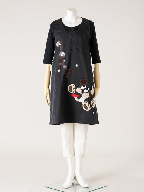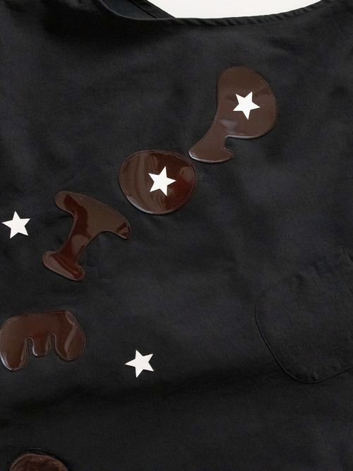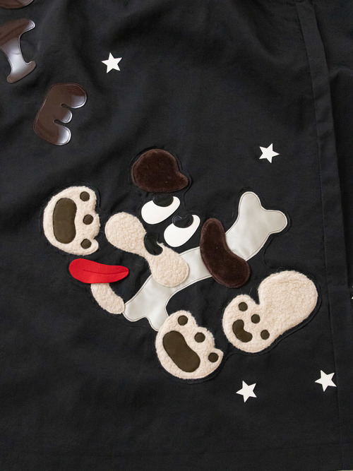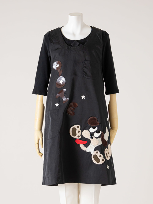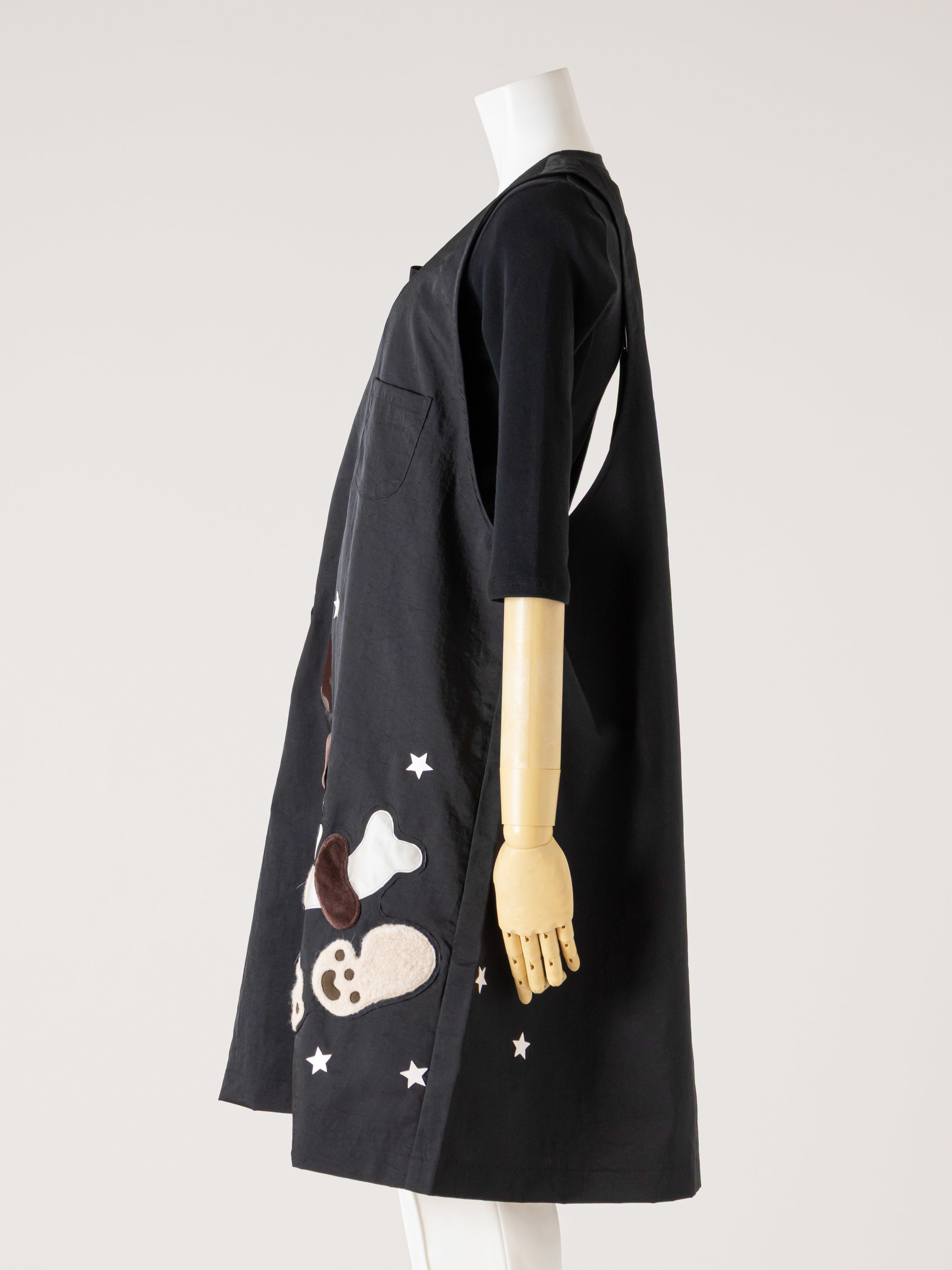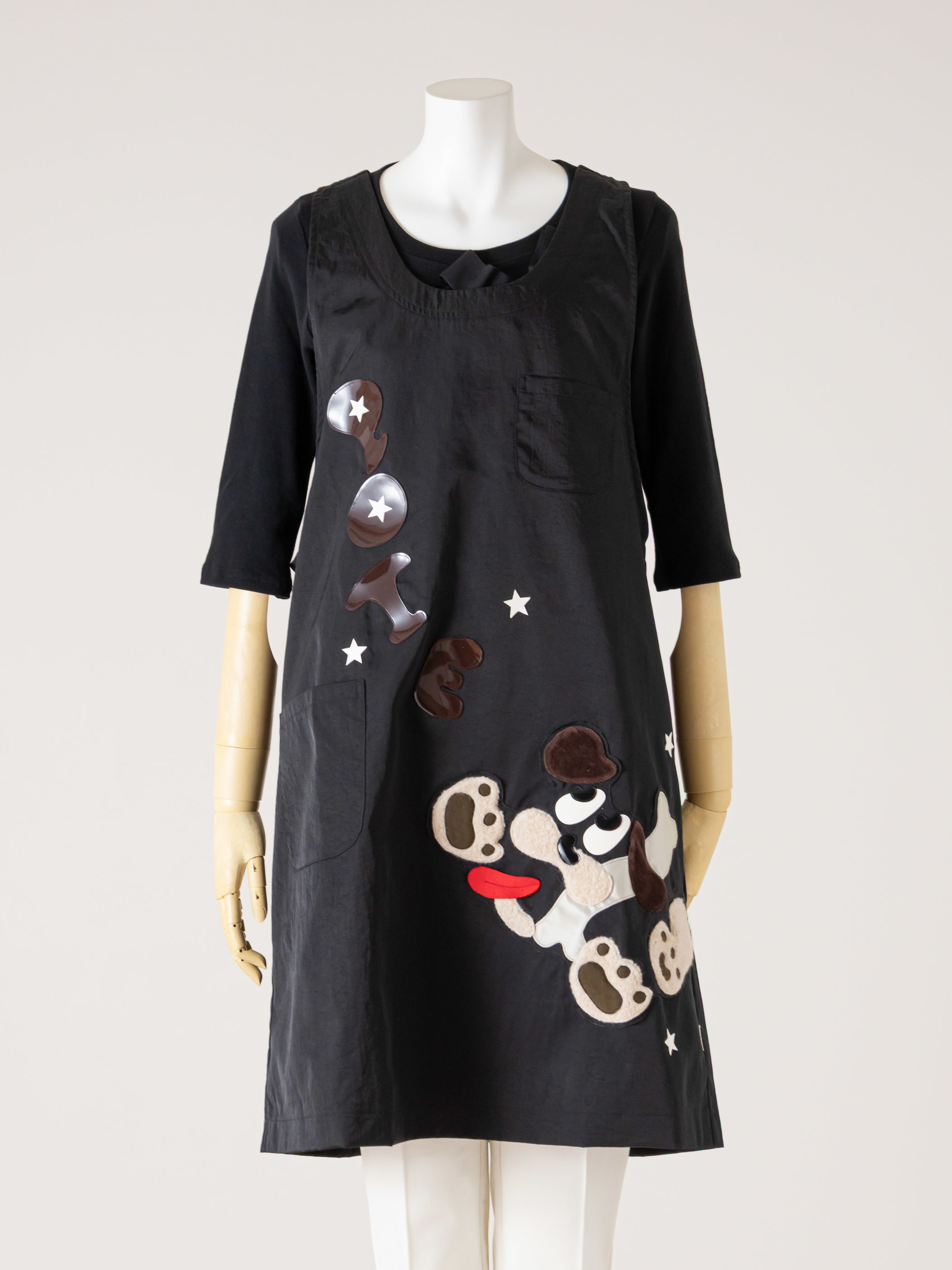 歌舞伎のポーズをしているような犬(カブケン)がPOTEロゴを見ているような、遊び心のあるデザインのエプロンです。