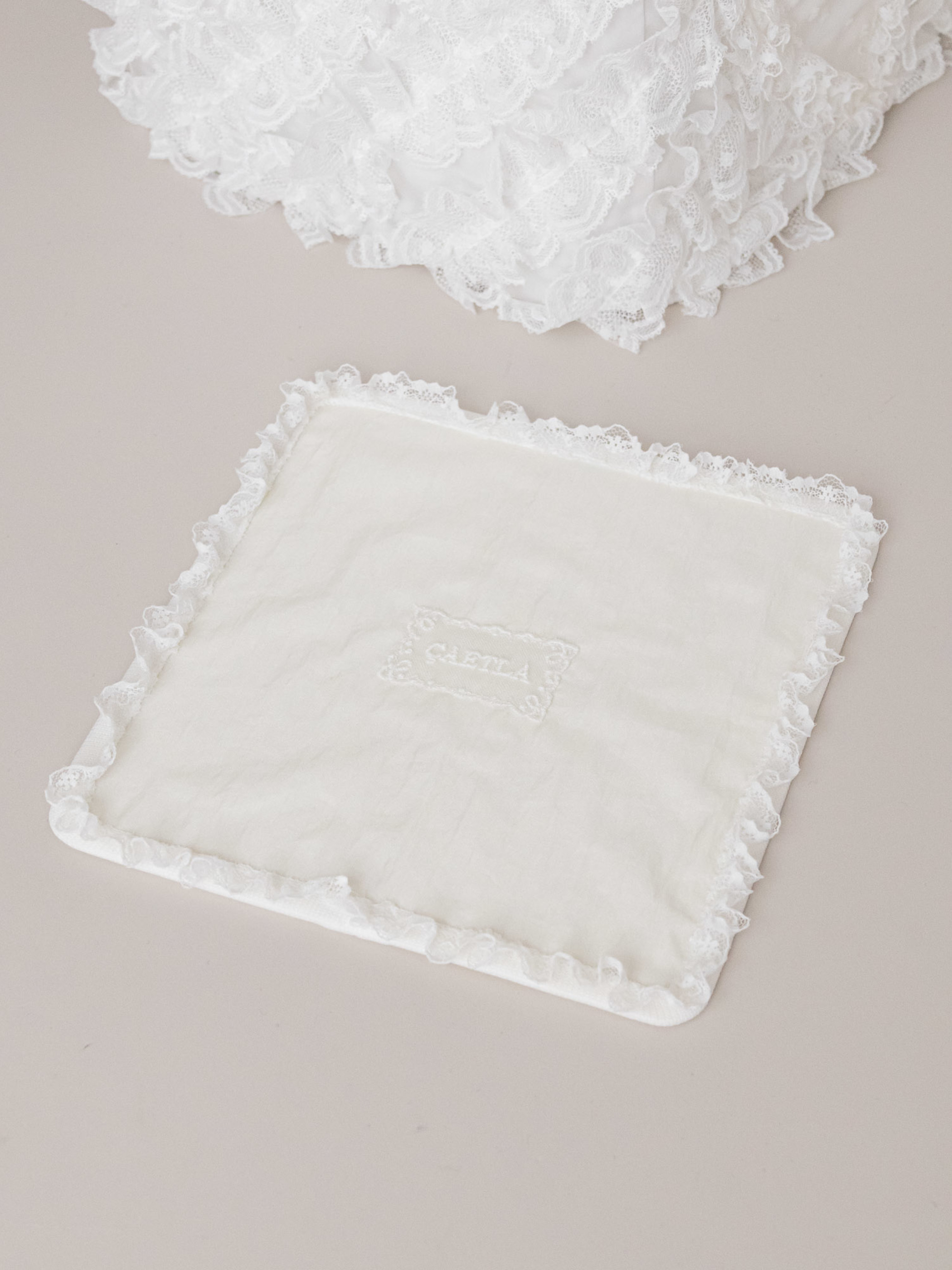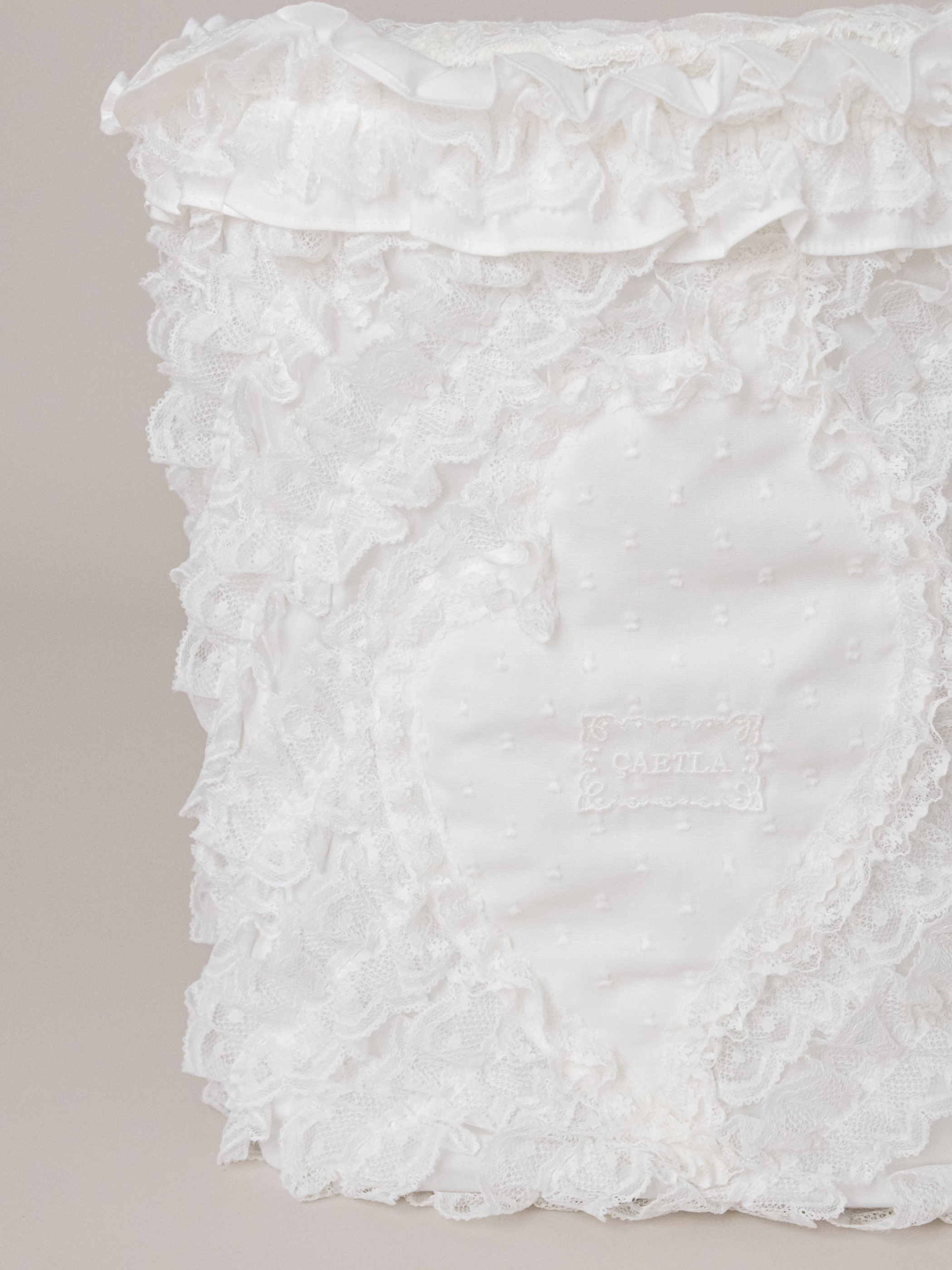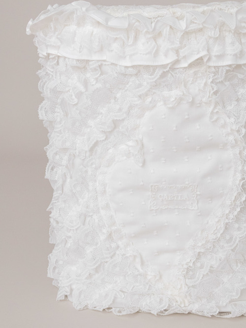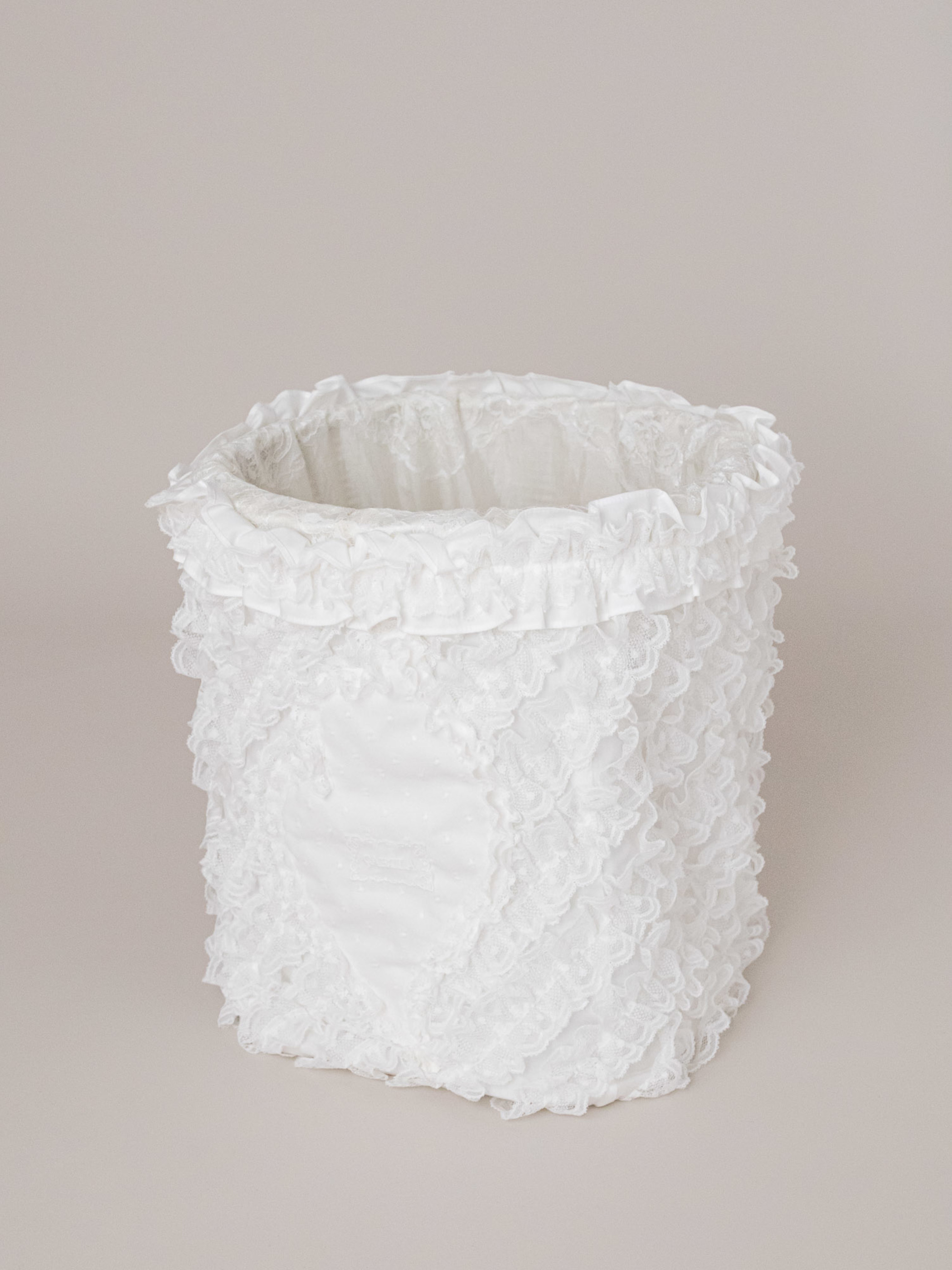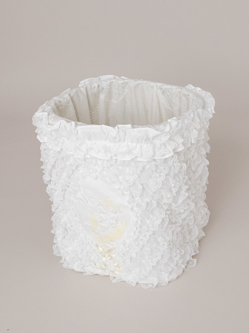 たっぷりのギャザーフリルで埋め尽くしタイプのバスケットです。
