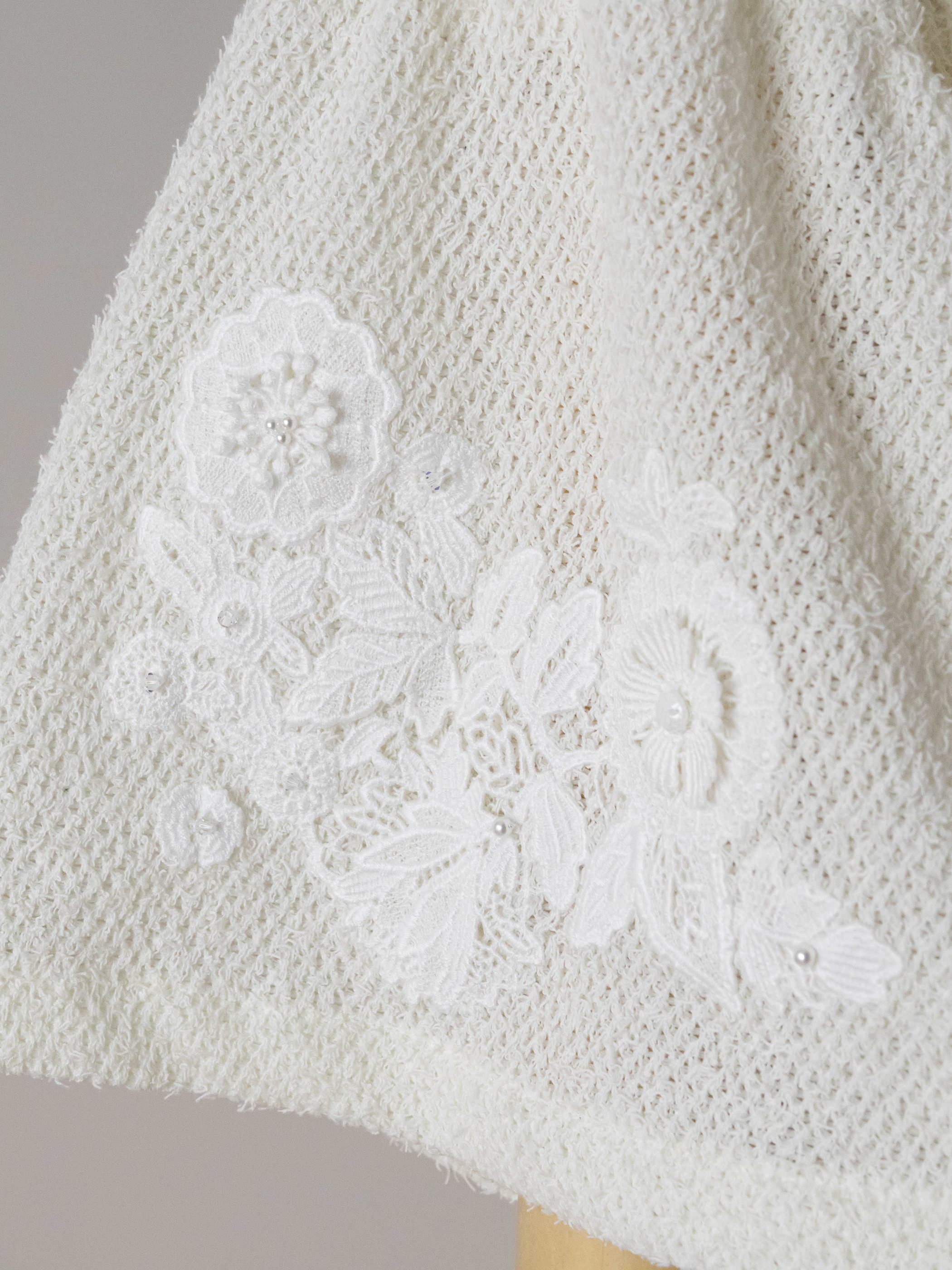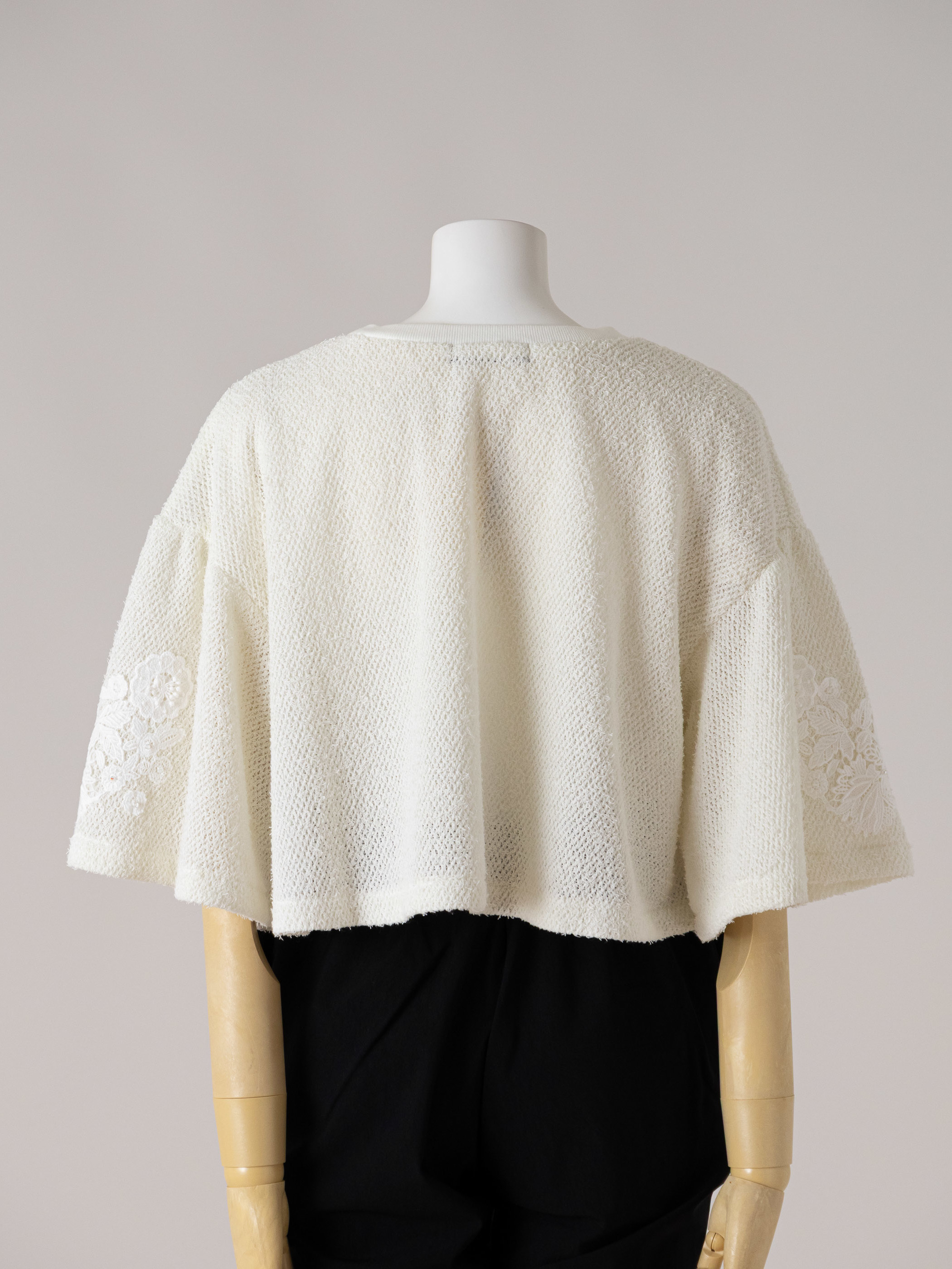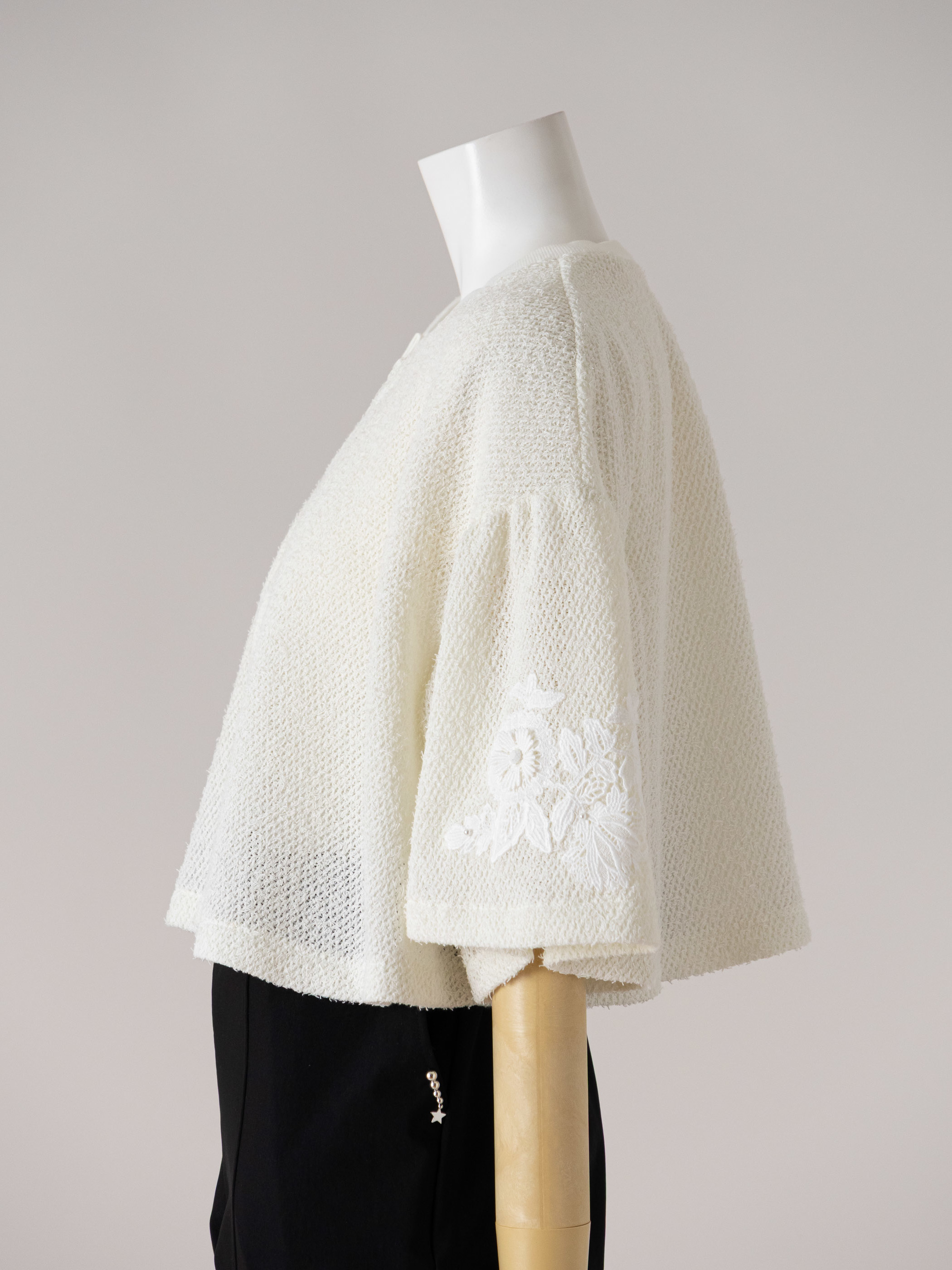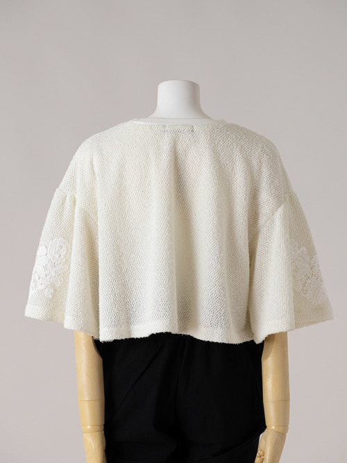 シンプルに合わせやすく、袖にのみレースを配置しています。