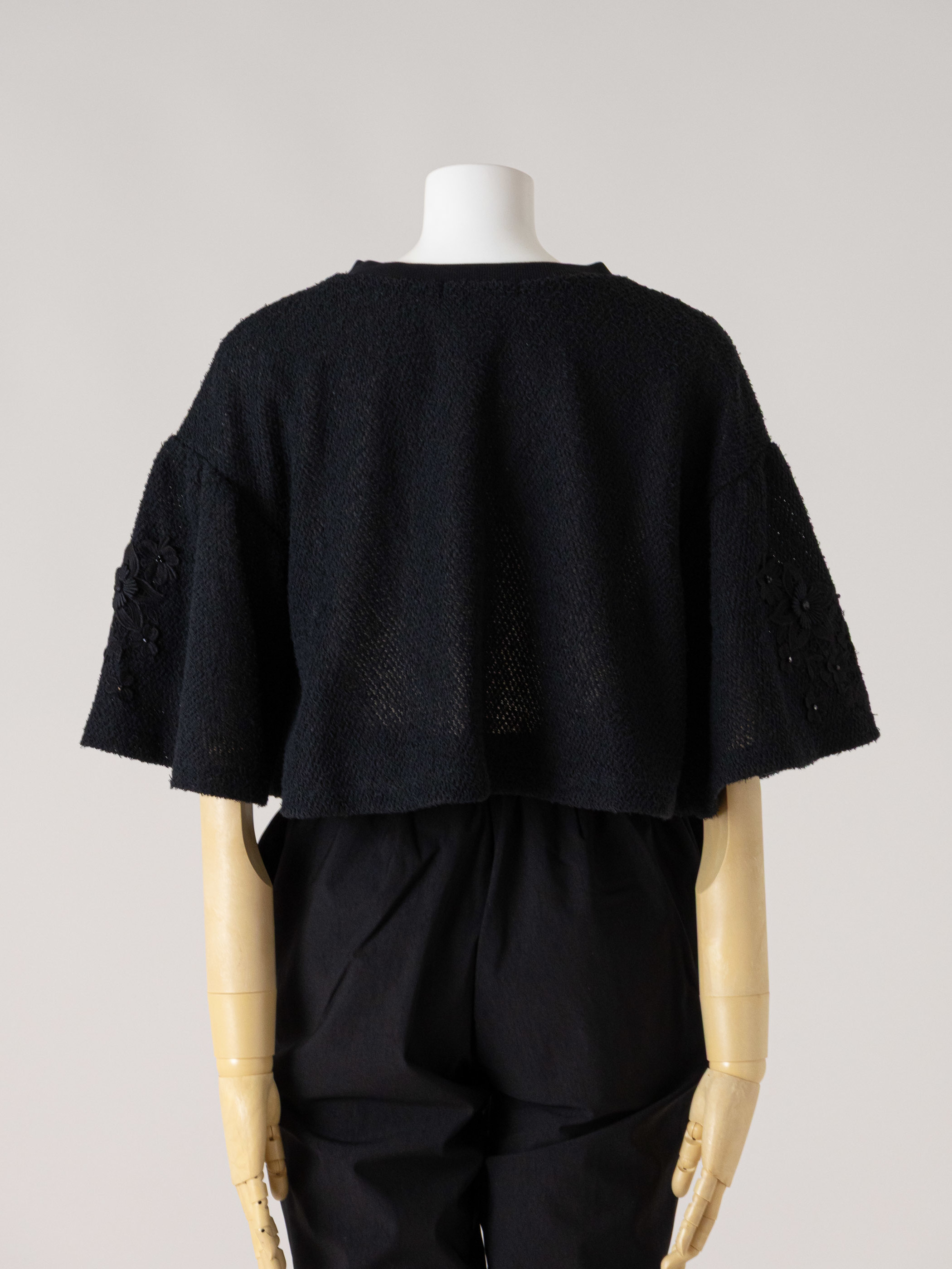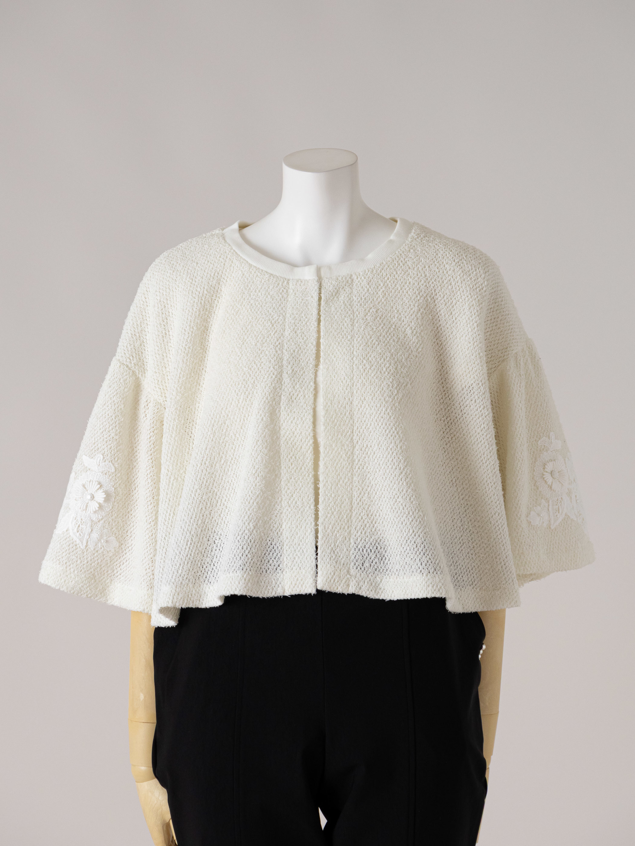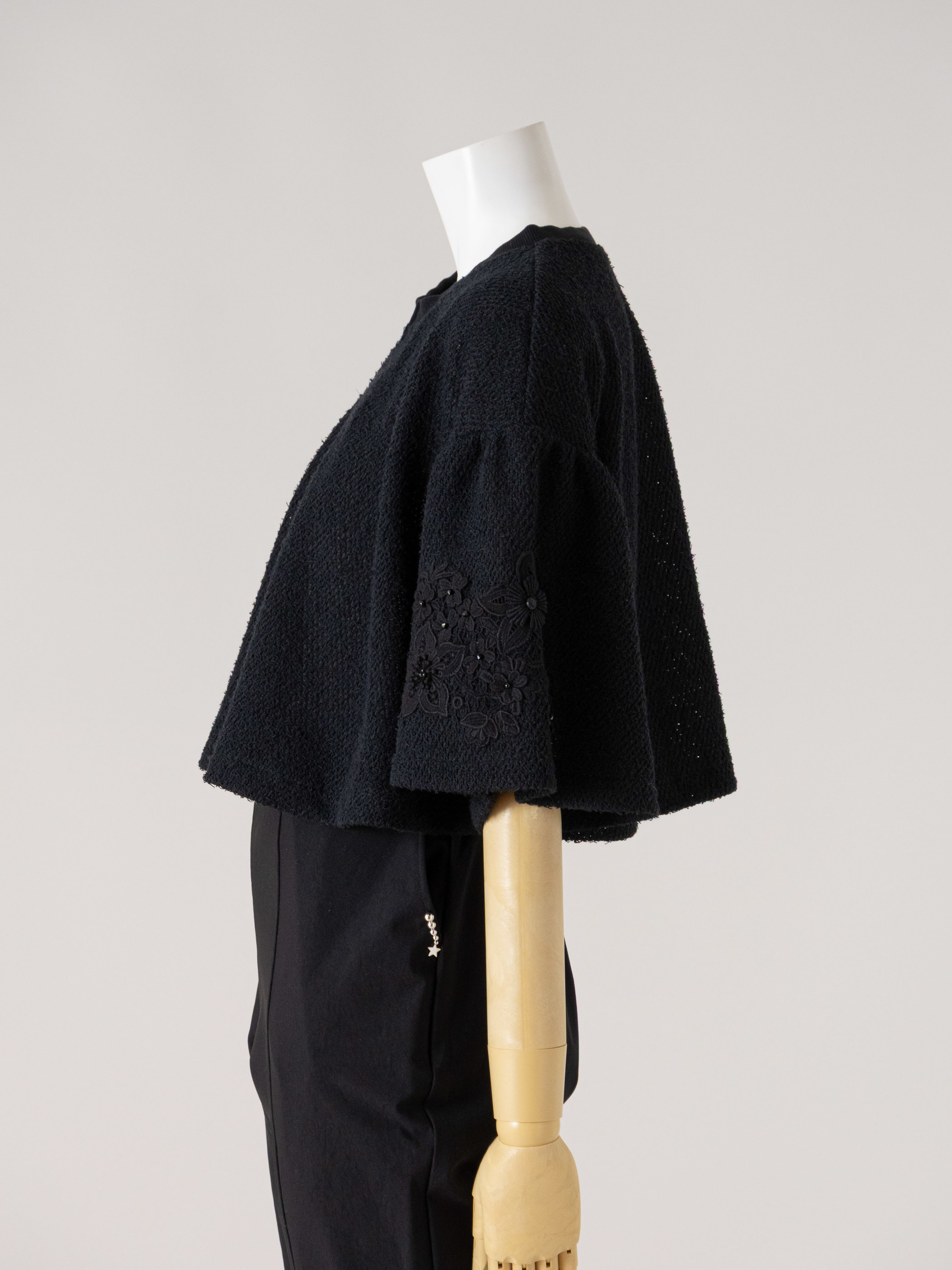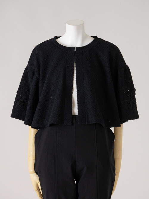 華やかさを高めるフレアースリーブのショート丈カーディガンです。