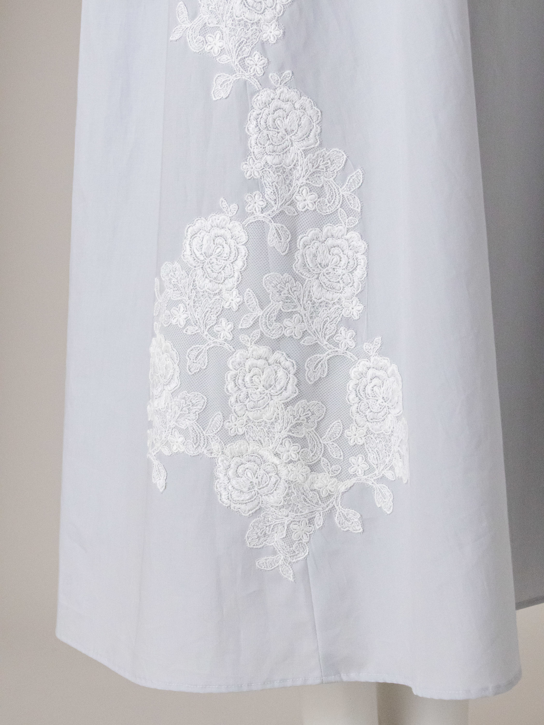 香水瓶のカットデザインをイメージしたケープカラーで腕をスッキリ見せるリラックスワンピースです。