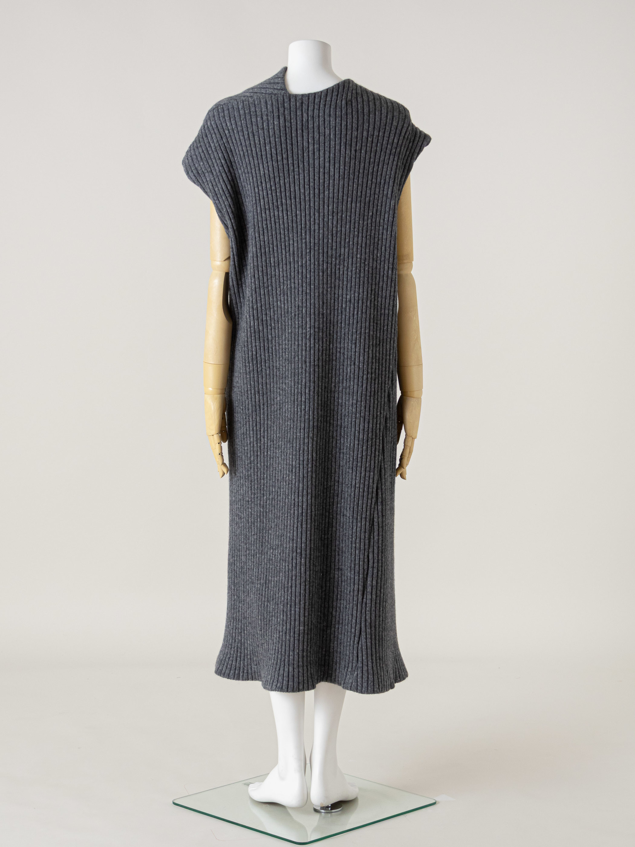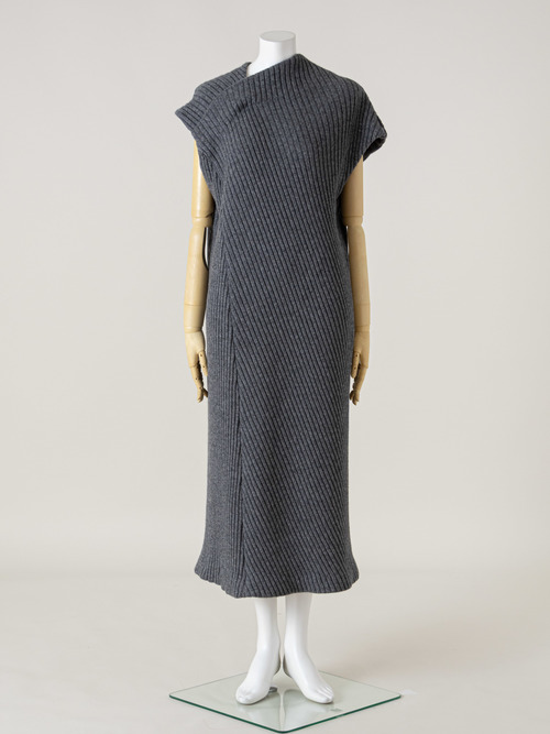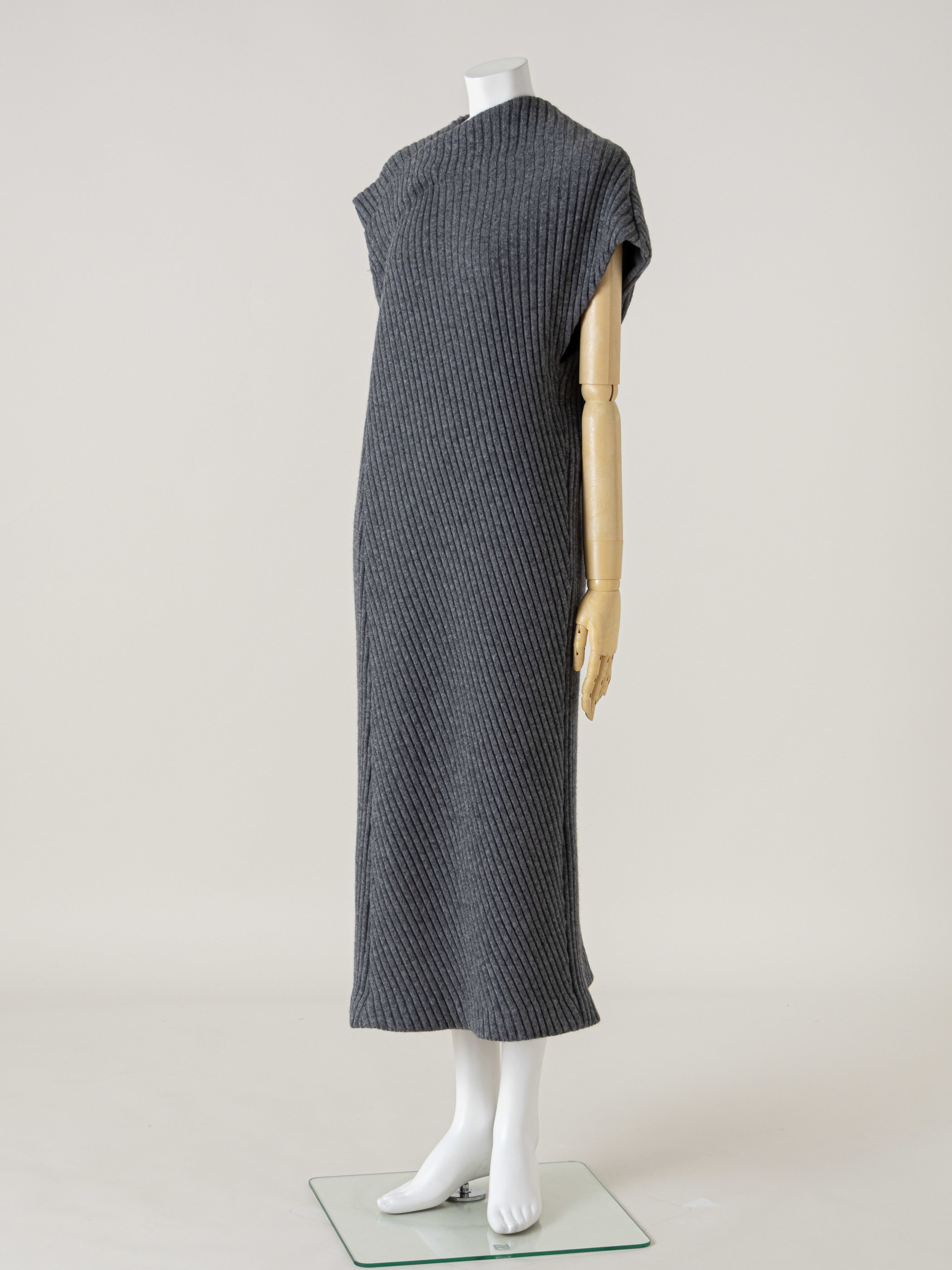 尾州で作られた太めのリブニットを用いたニットドレスです。