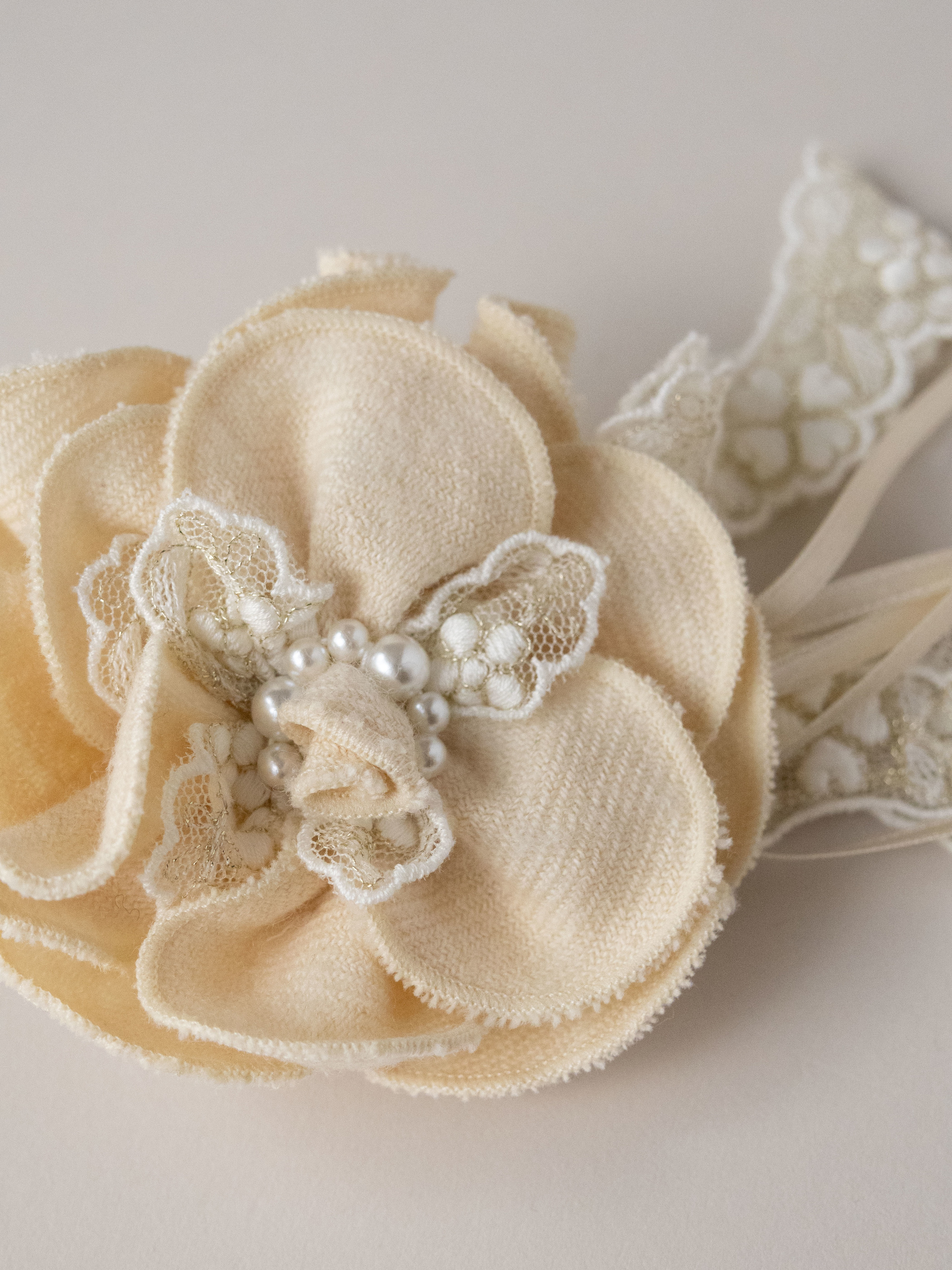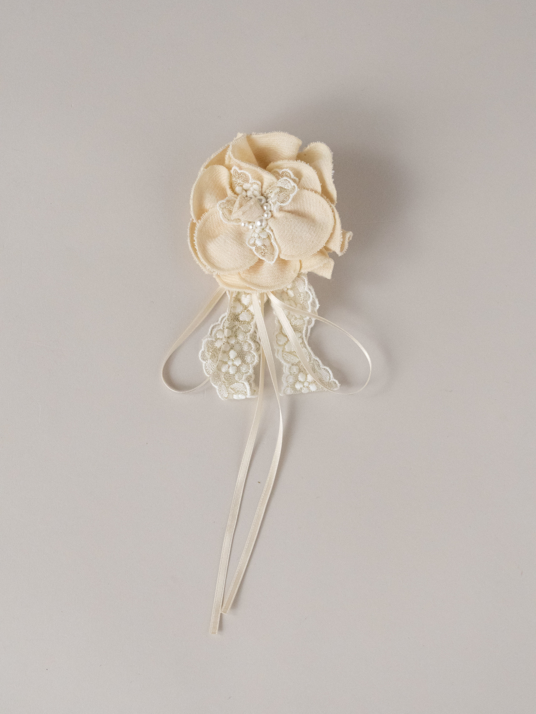 ウール素材を花びらにし、ラメ糸の入ったチュールレースと合わせてお作りしたお花のブローチです。
