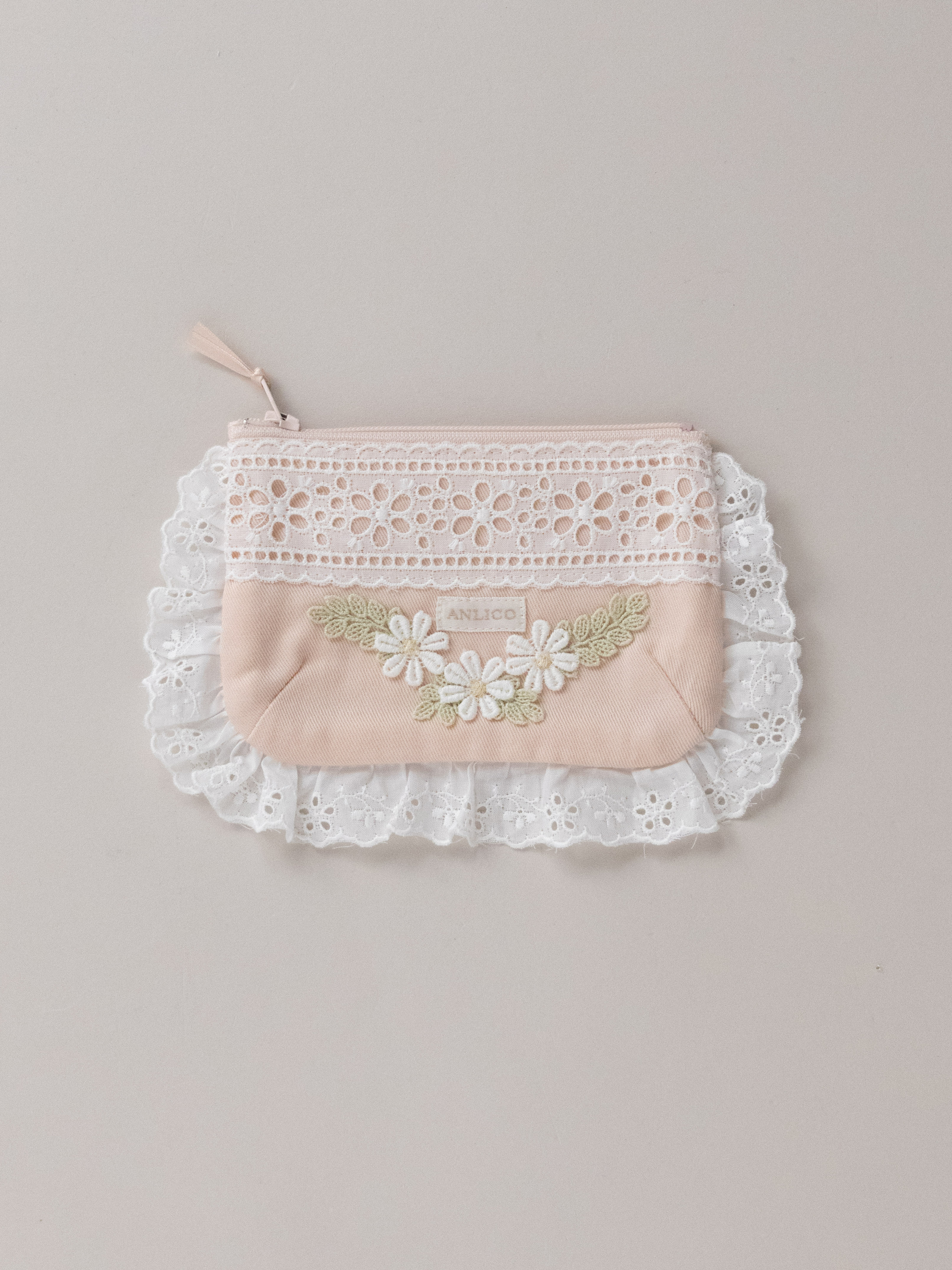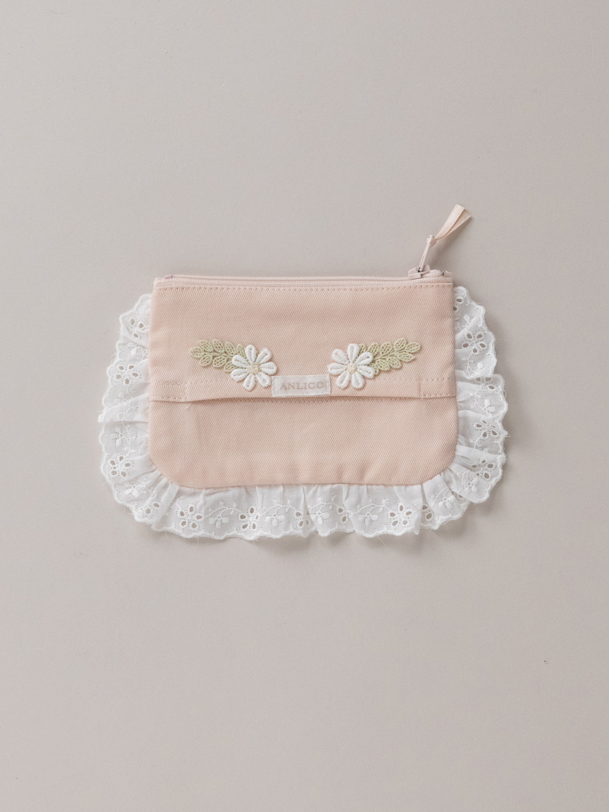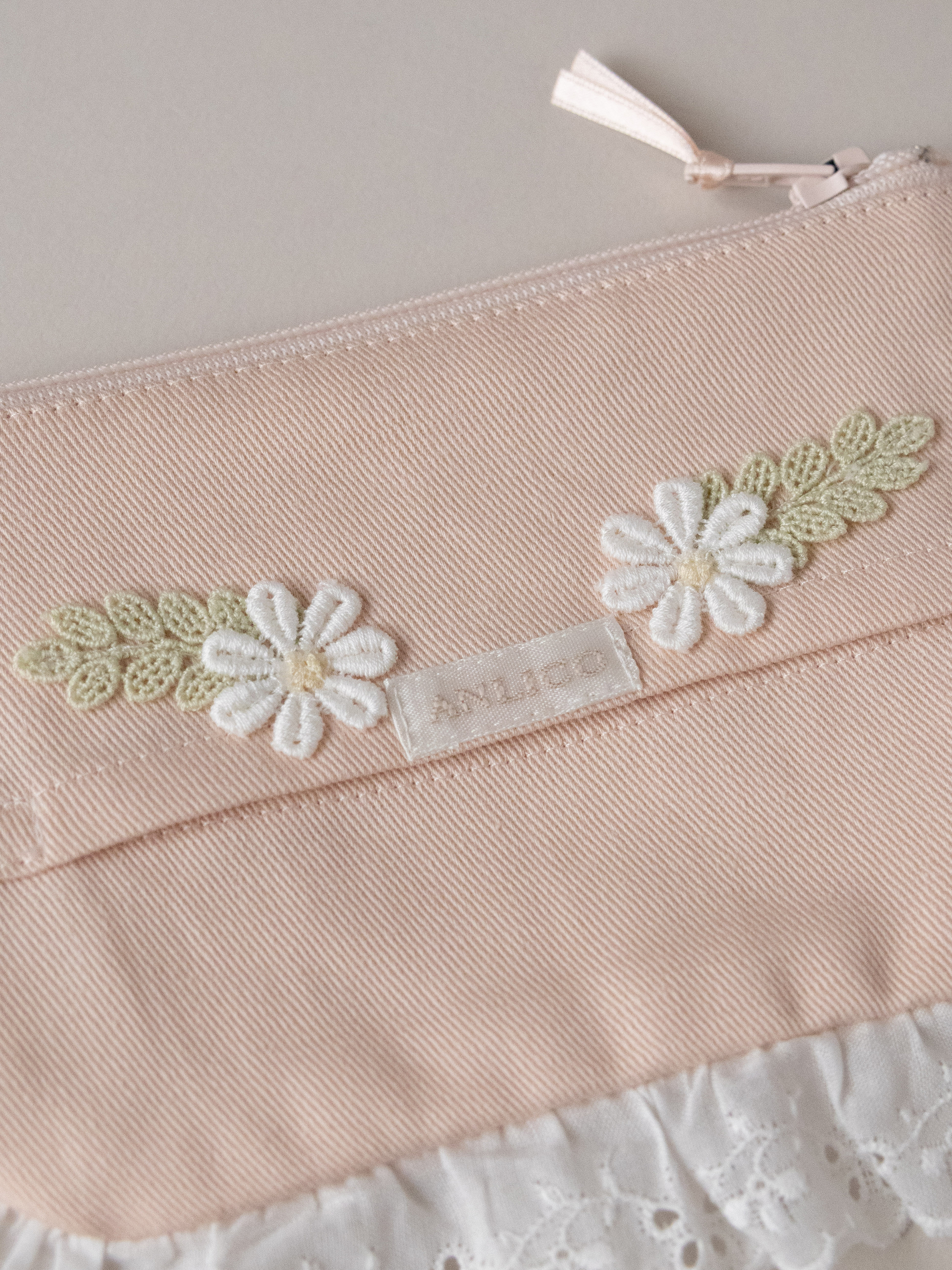 裏側にティッシュケースを入れる部分が兼ね備えられたポーチです。