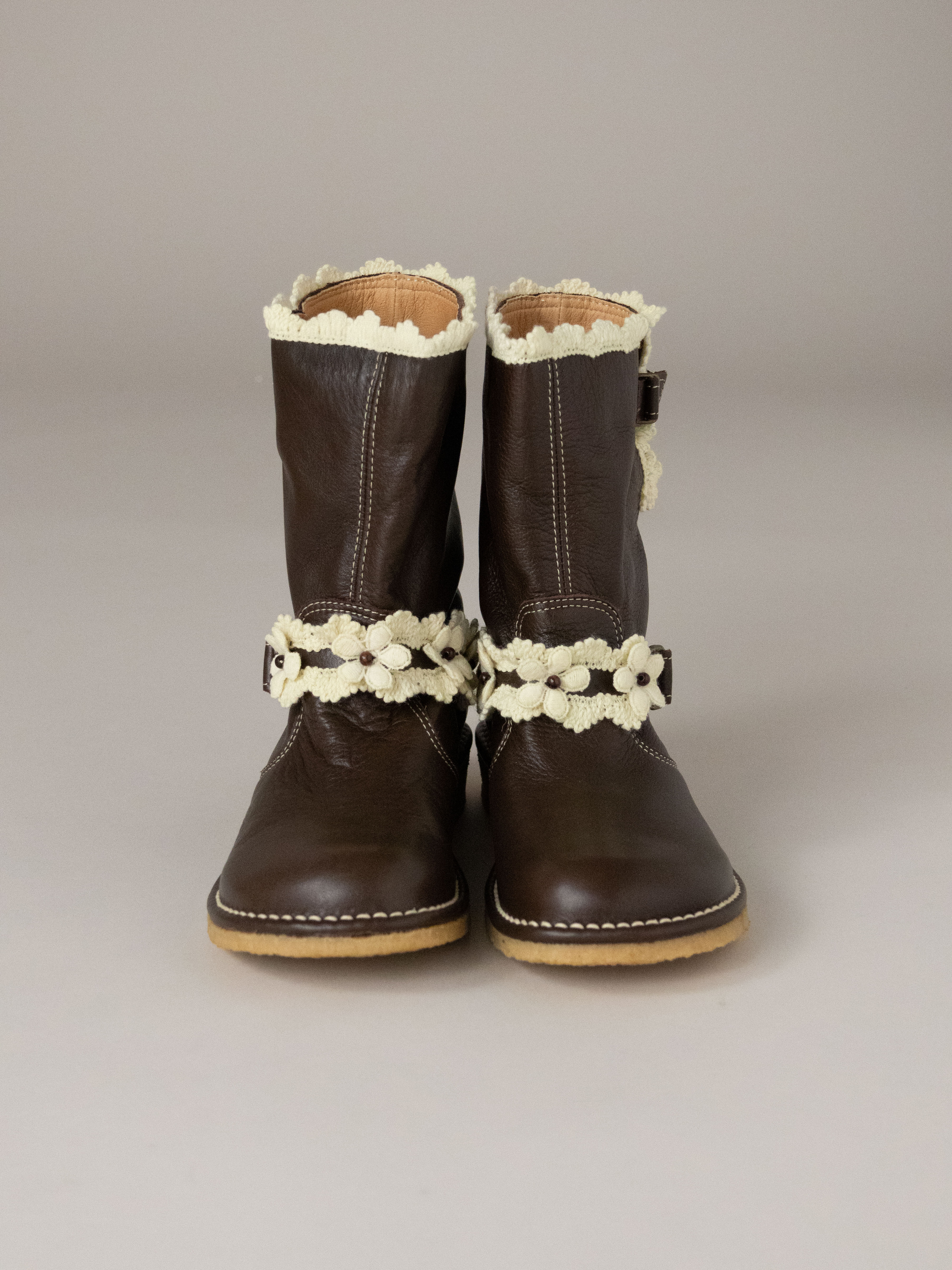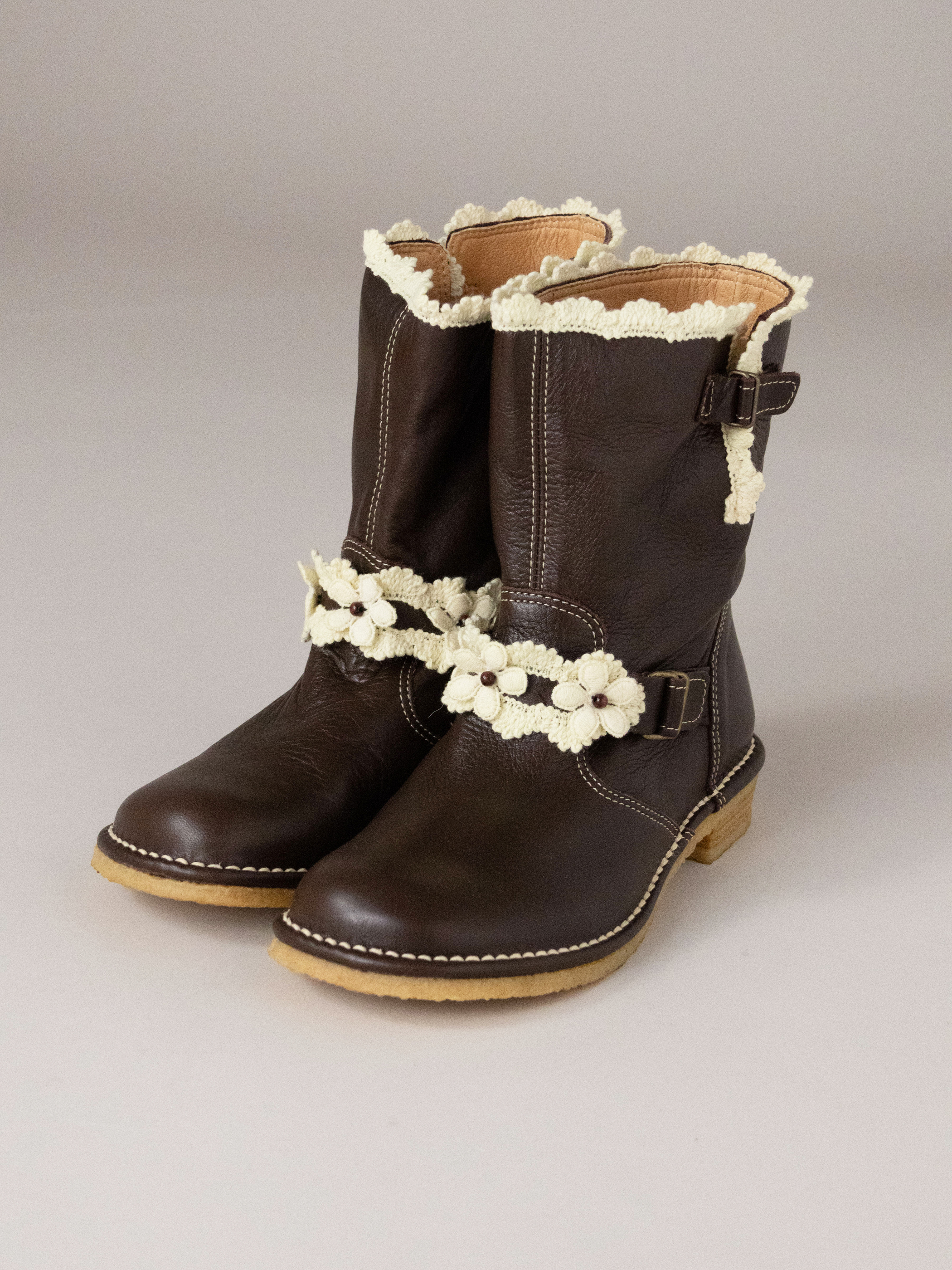 アンリコらしいコットンのお花やレースを纏ったショートブーツです。