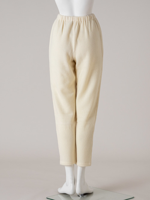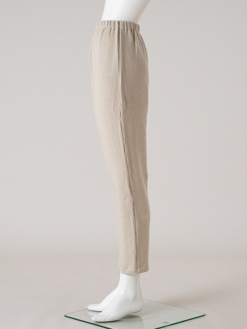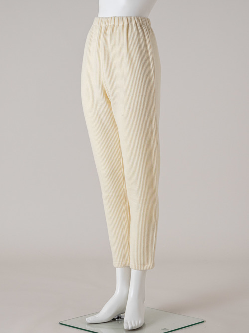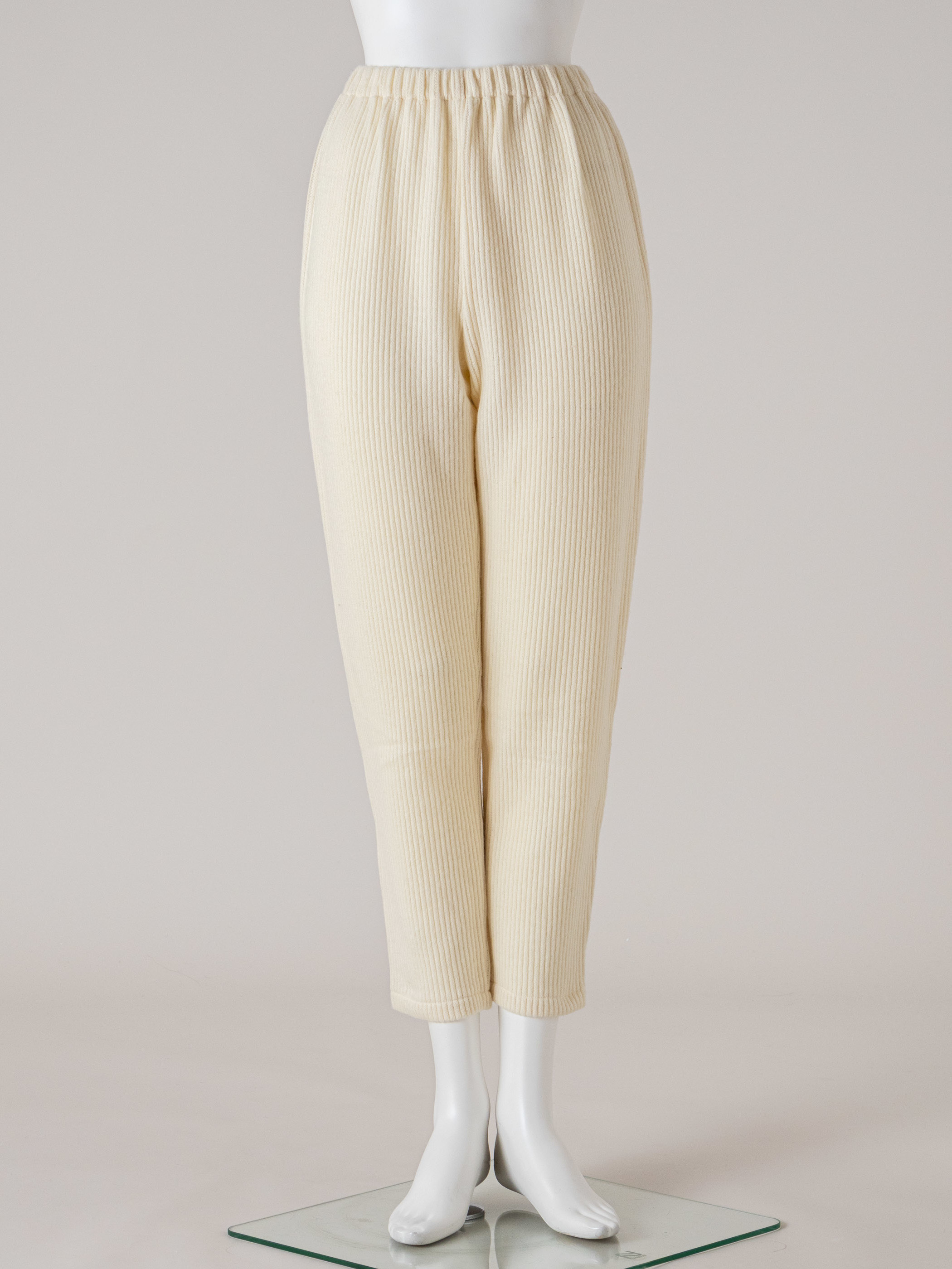 縦畝のあるリブ編みが、すっきりとした印象を与えながら、伸びやかで締め付けのない穿き心地です。