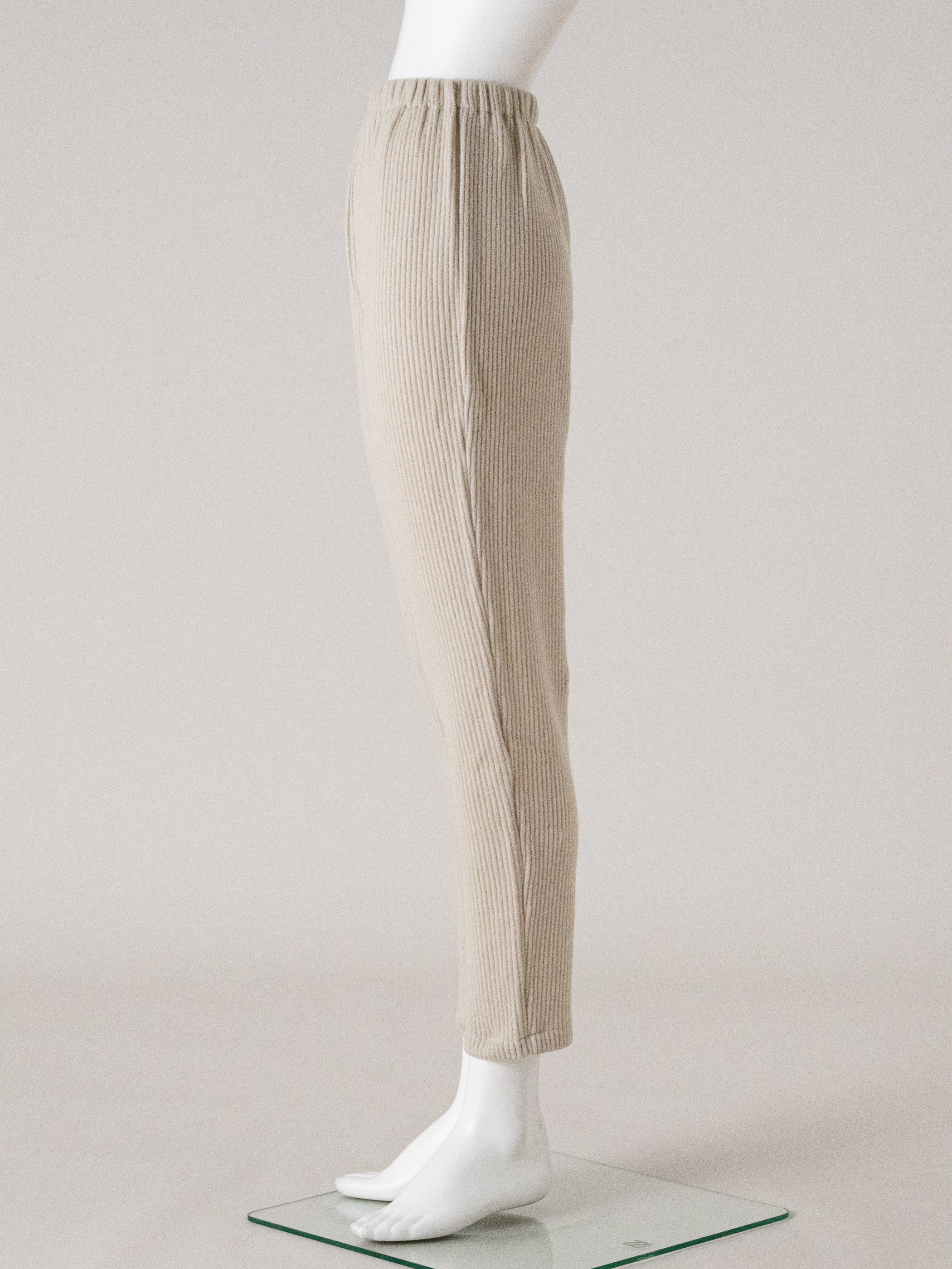 柔らかなニット生地を使用した、リラックス感のあるリブニットパンツです。