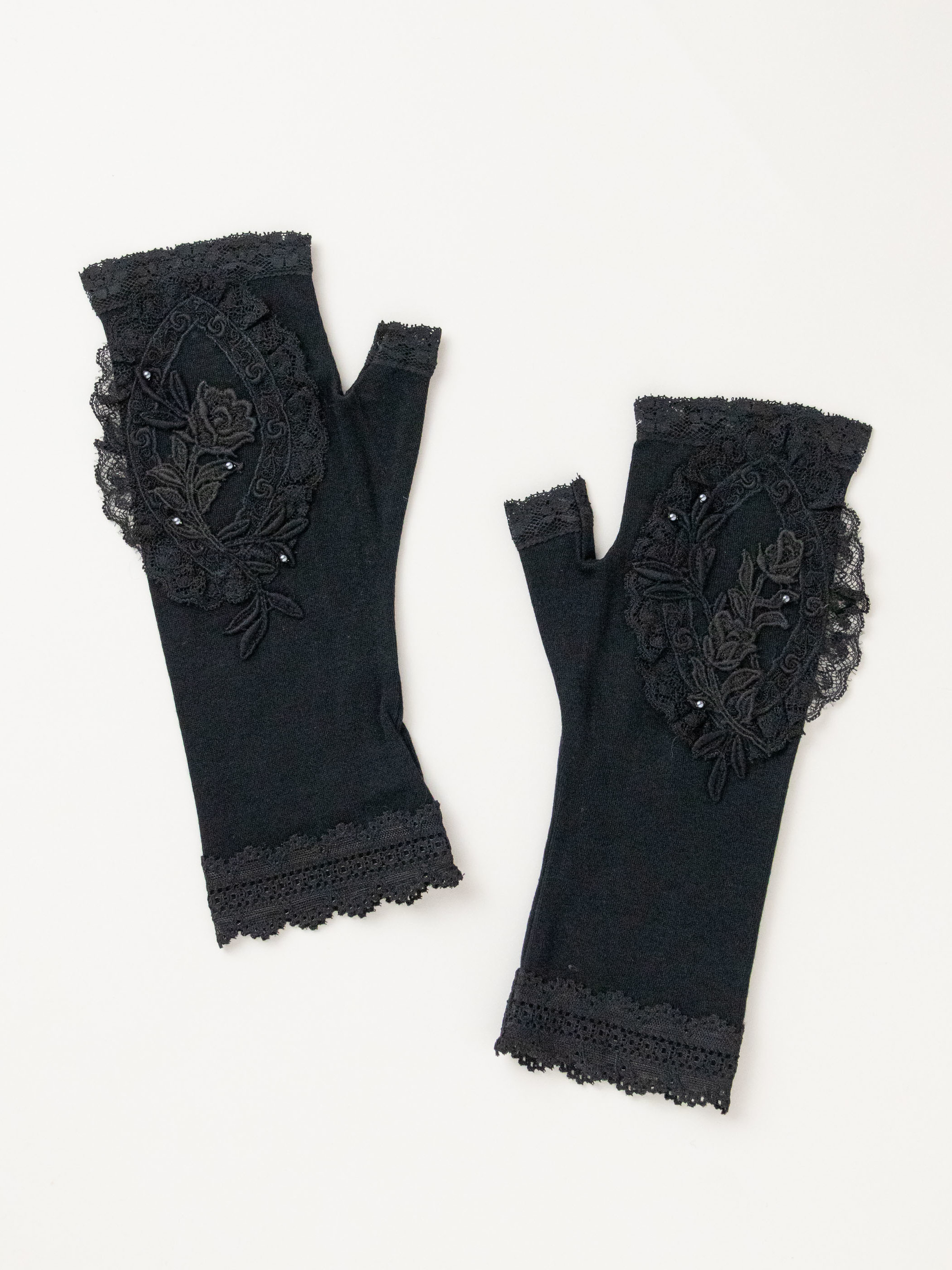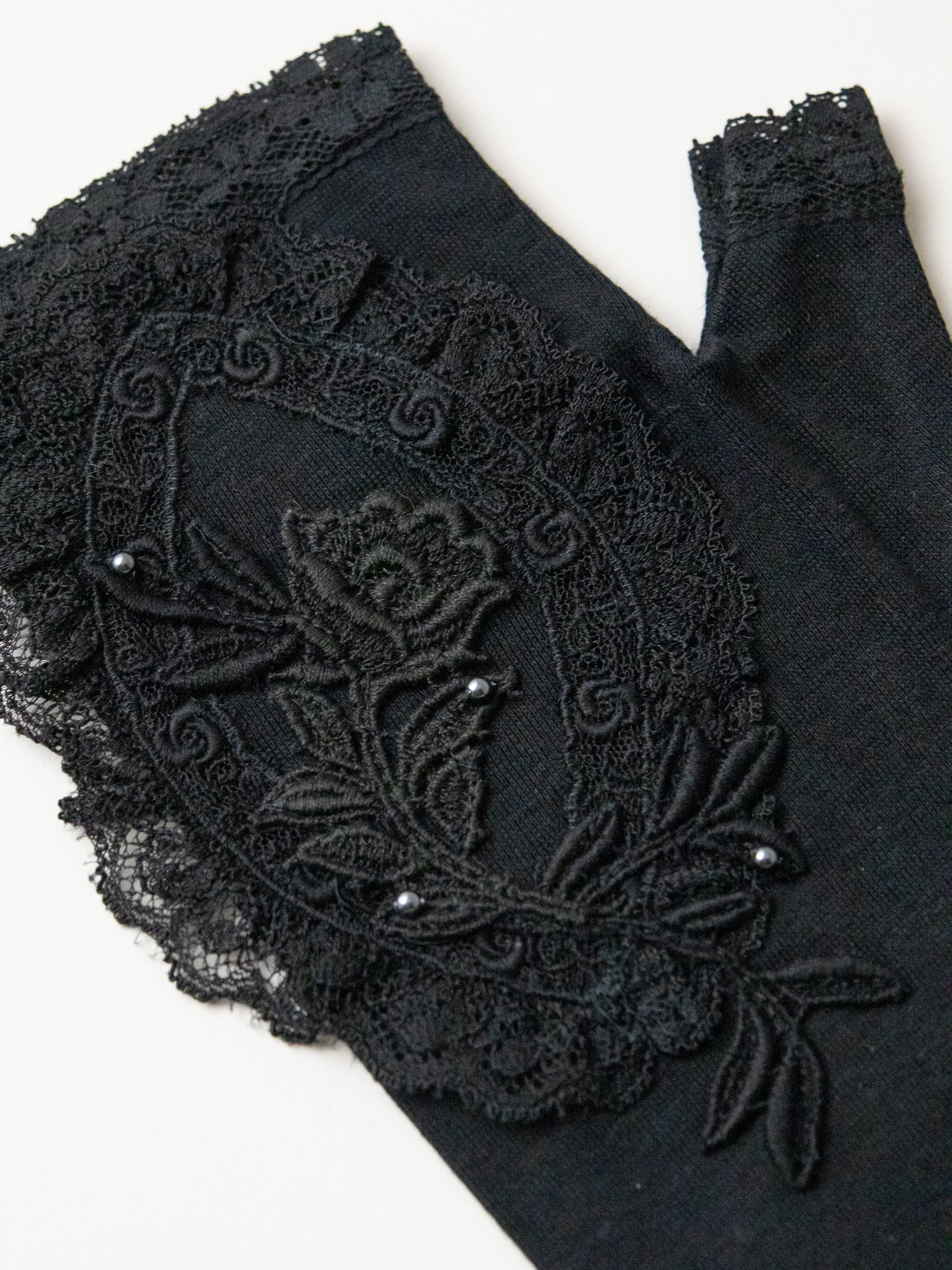 草花とビジューをレースの額に閉じ込めているようなオーナメント風のデザインです。