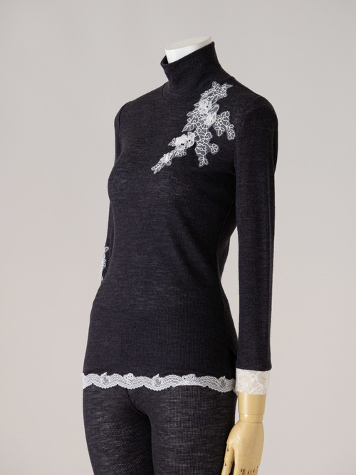 包み込むような肌触りが魅力のシルクウールテレコのハイネックインナーです。