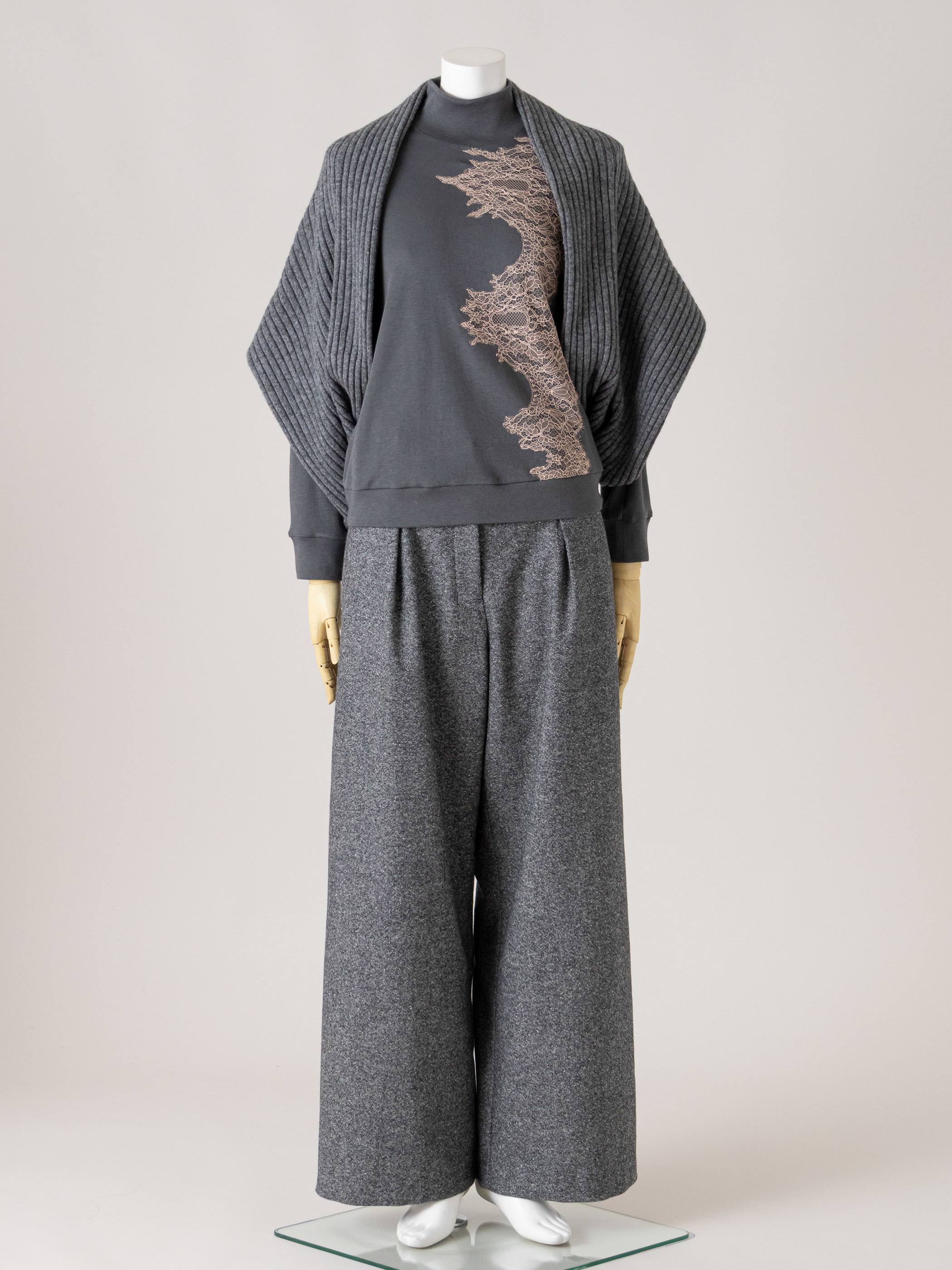 ウールをベースにカシミヤをブレンドした暖かみのあるミックス感豊かな表情が特徴の素材を使⽤しております。