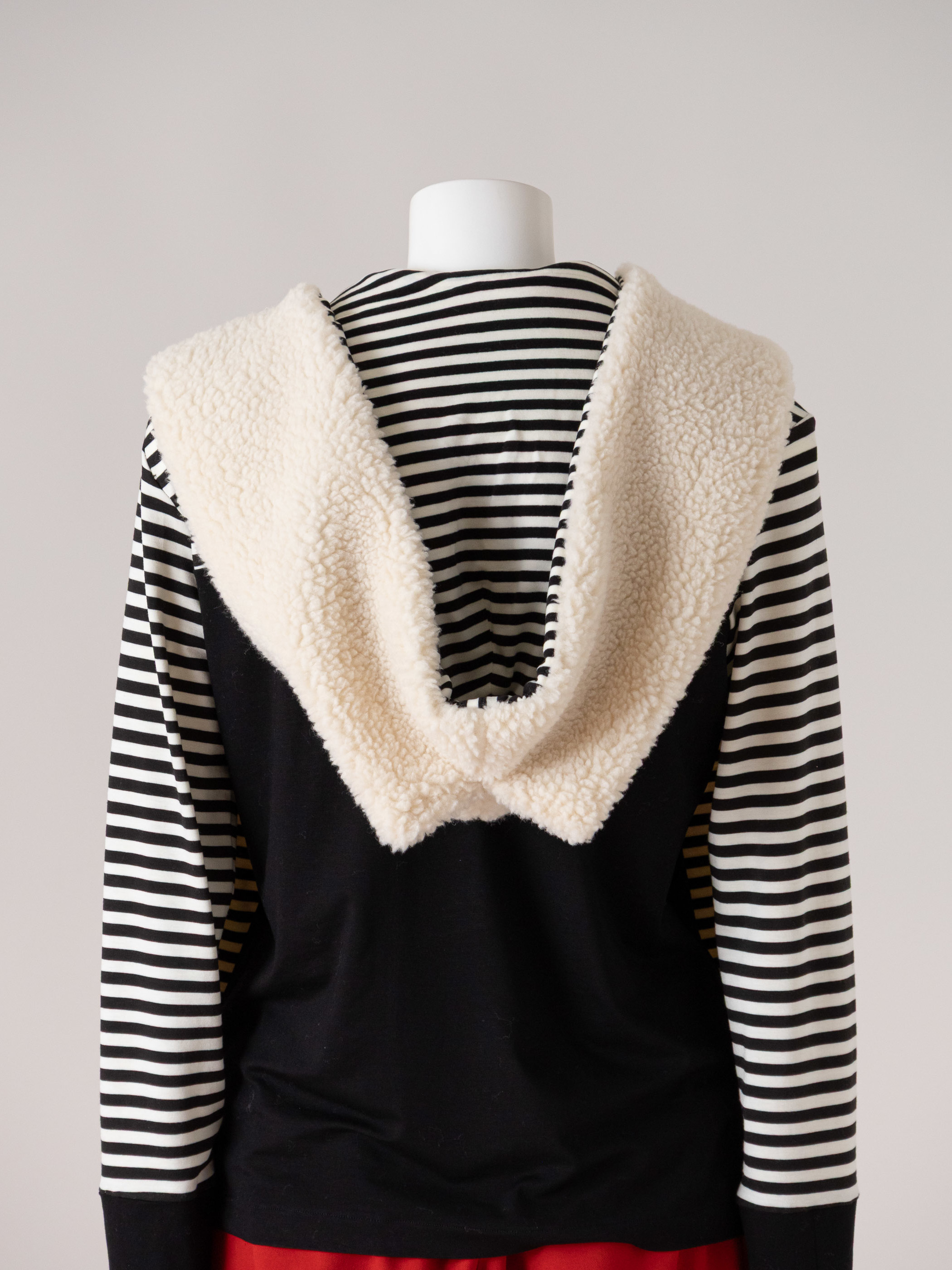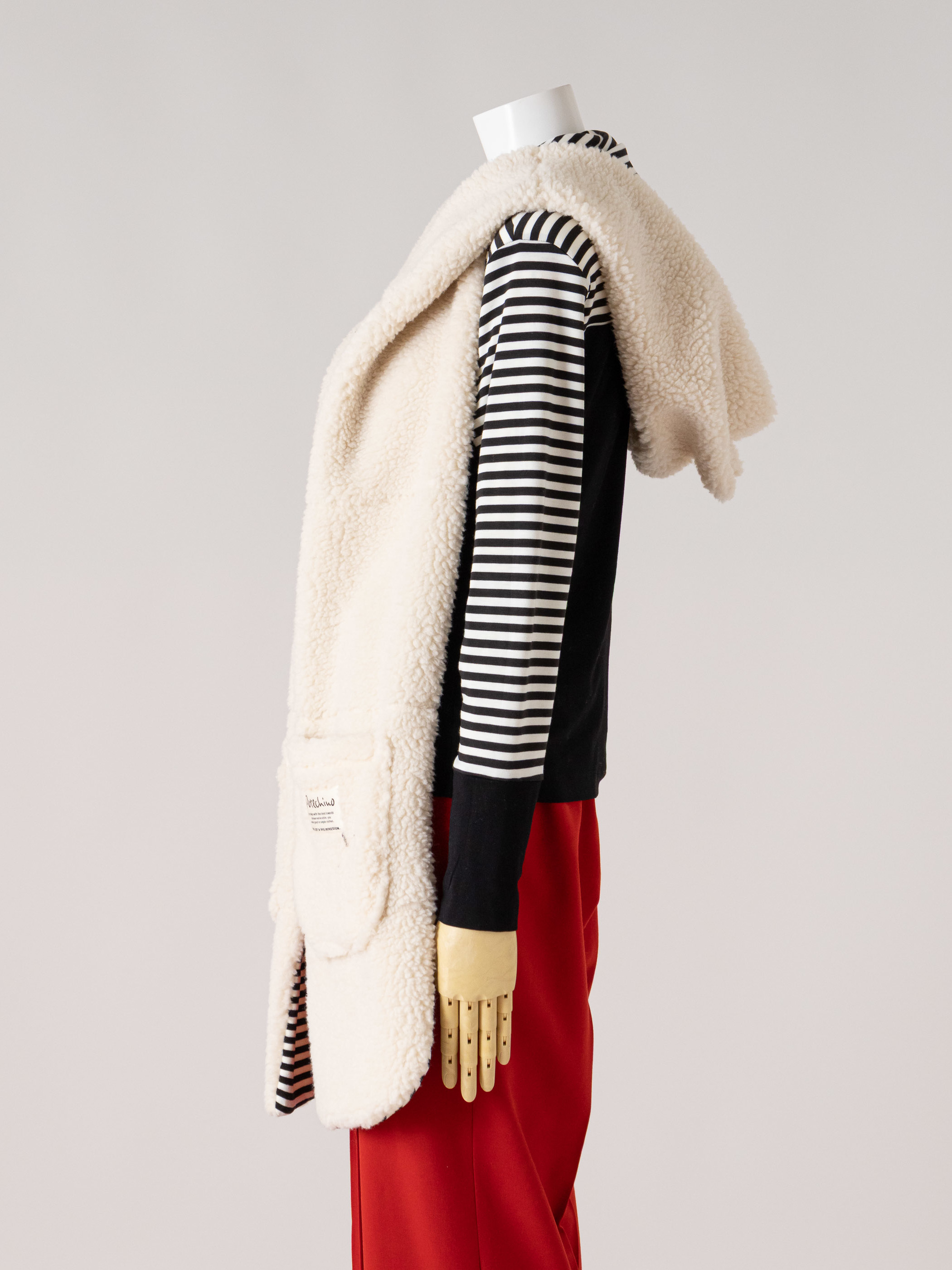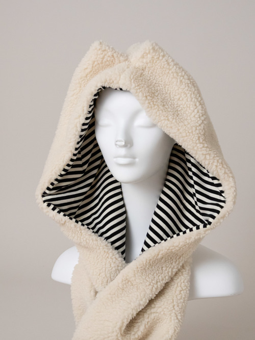 もちもちとした手触りのボアを使用したフード付きマフラーです。