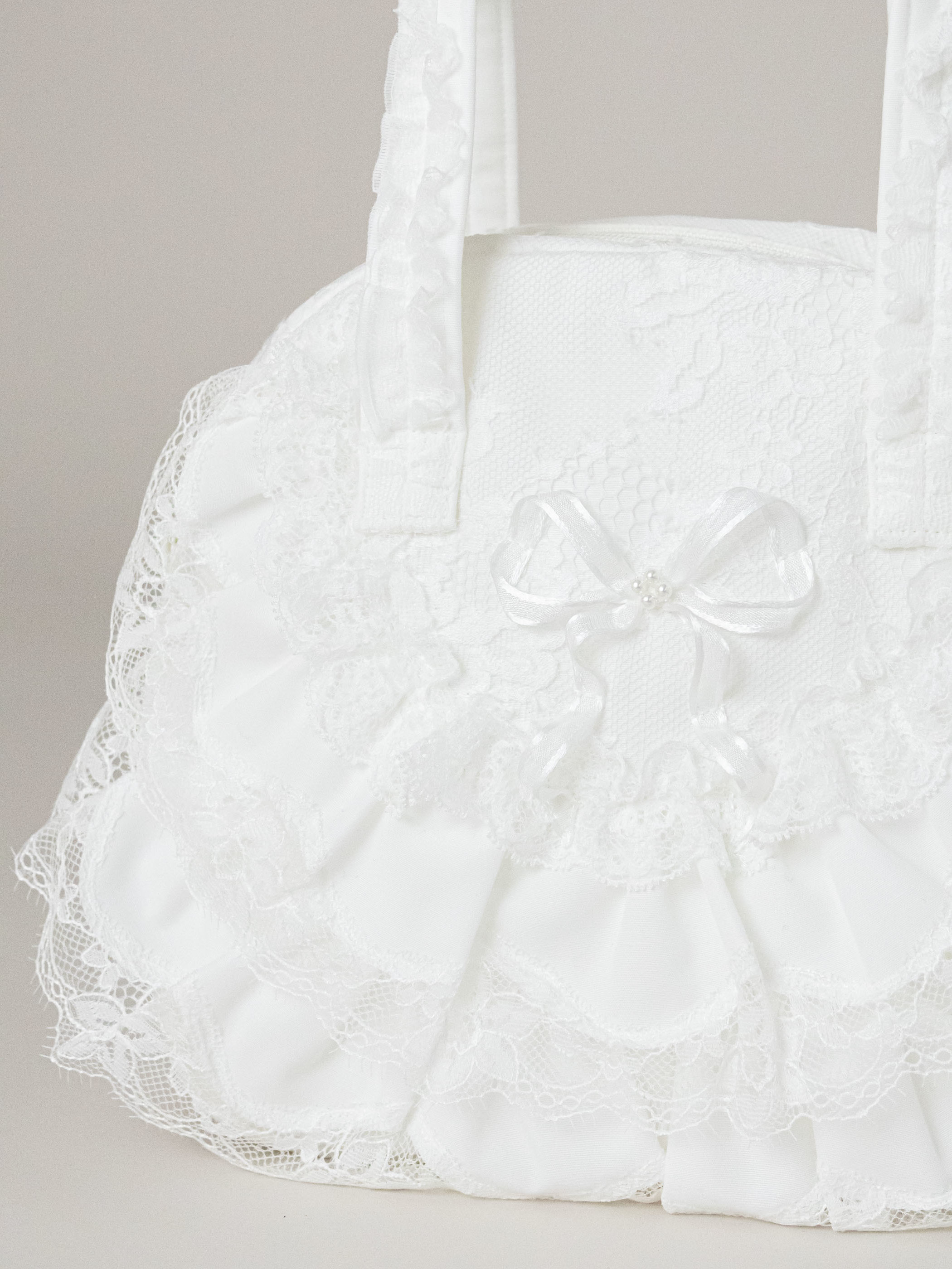 本体から溢れ出るフリルが華やかなバッグです。