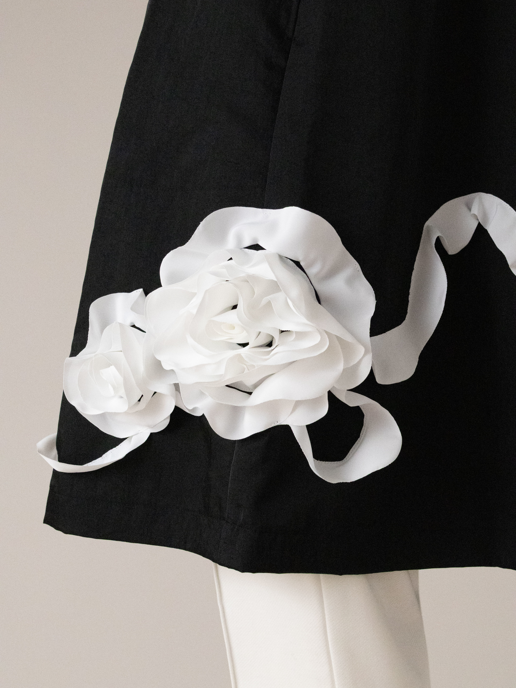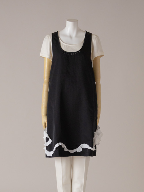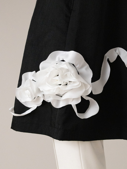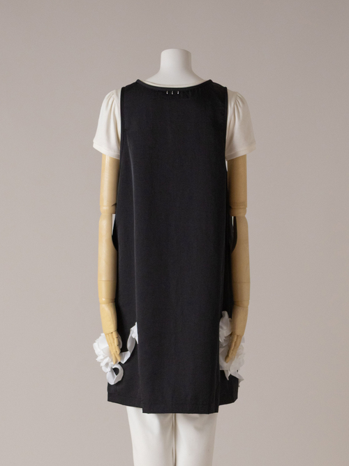 裾に流れるように入ったお花のデザインが特徴のエプロンです。