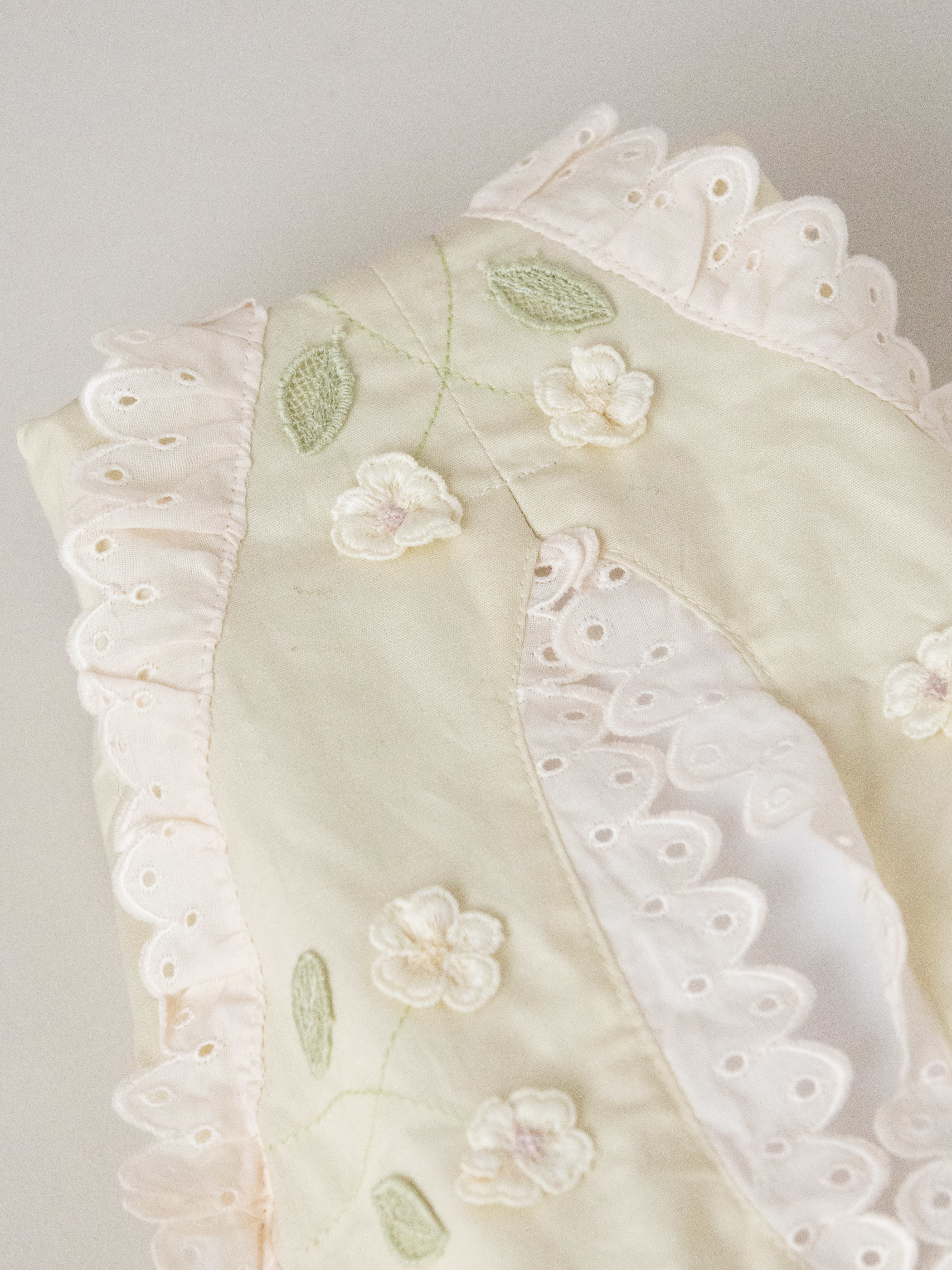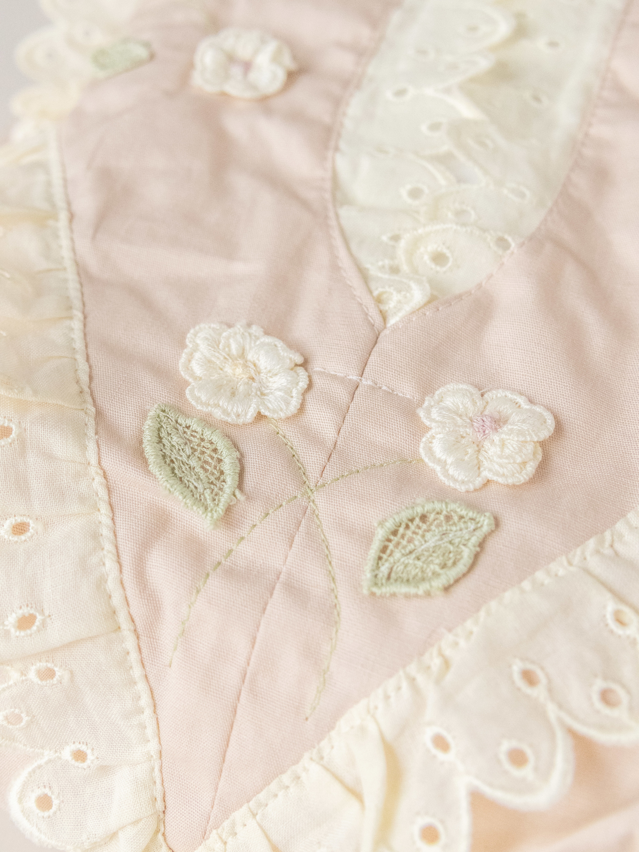 モチーフレースや刺繍で柔らかいデザインに仕上げております。
