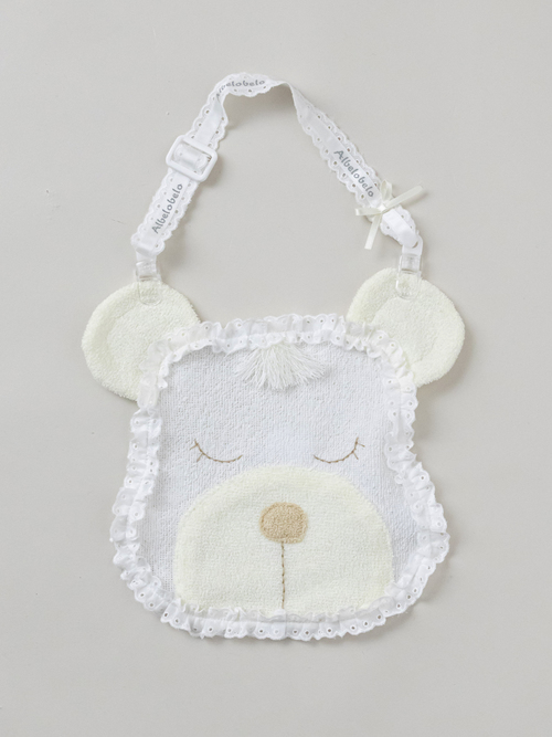 クマのお顔が可愛らしいパイル生地を使用したスタイです。