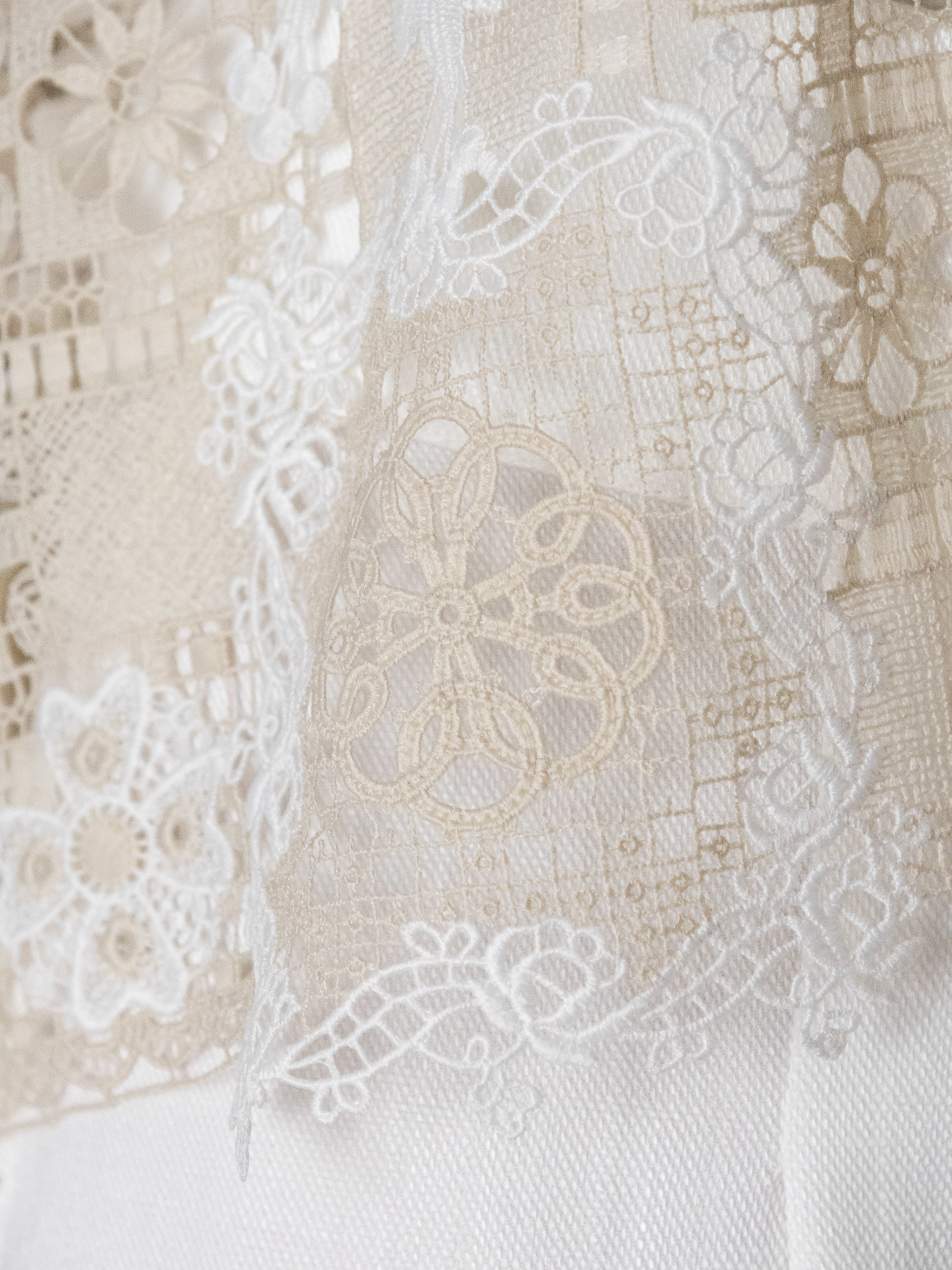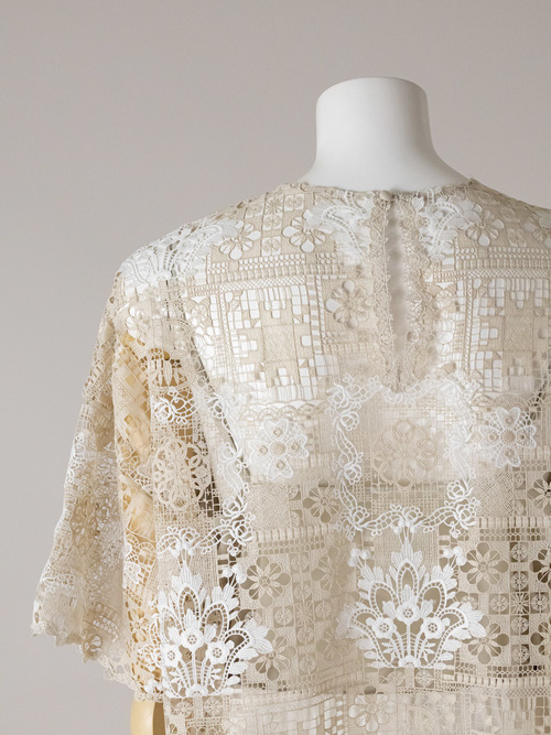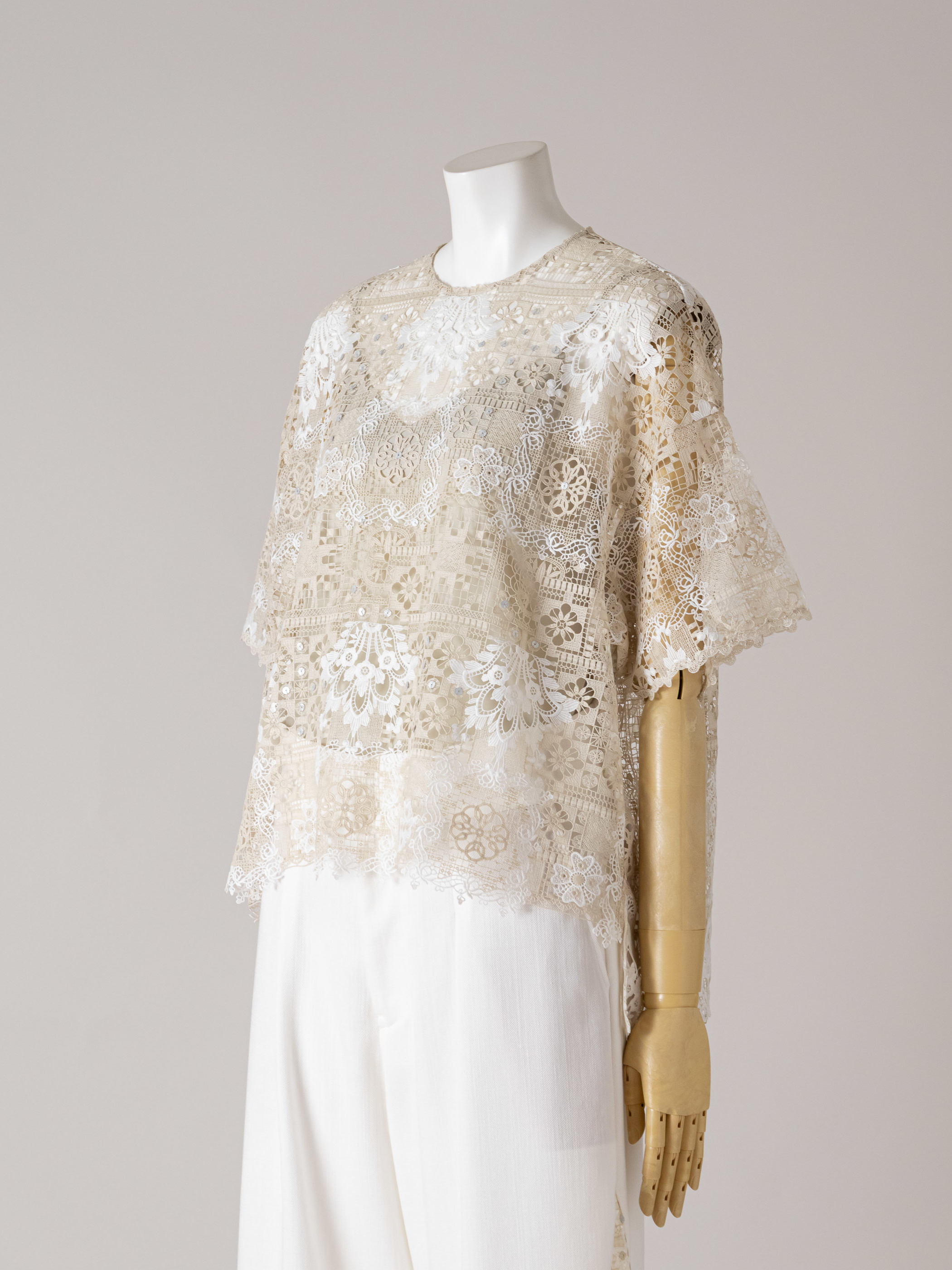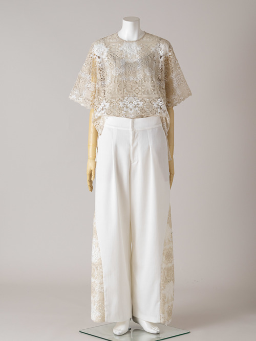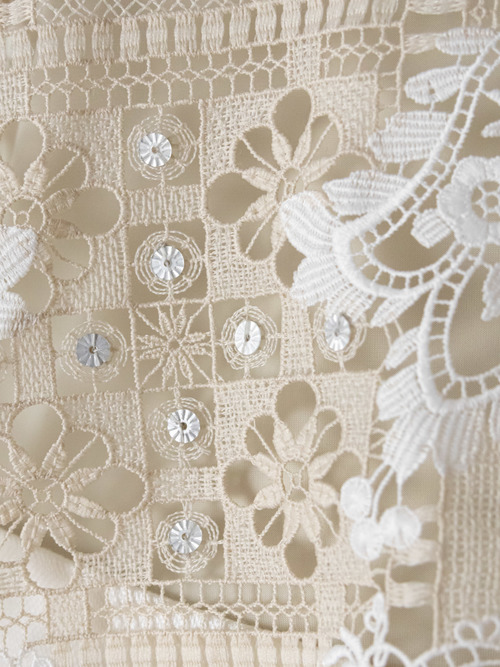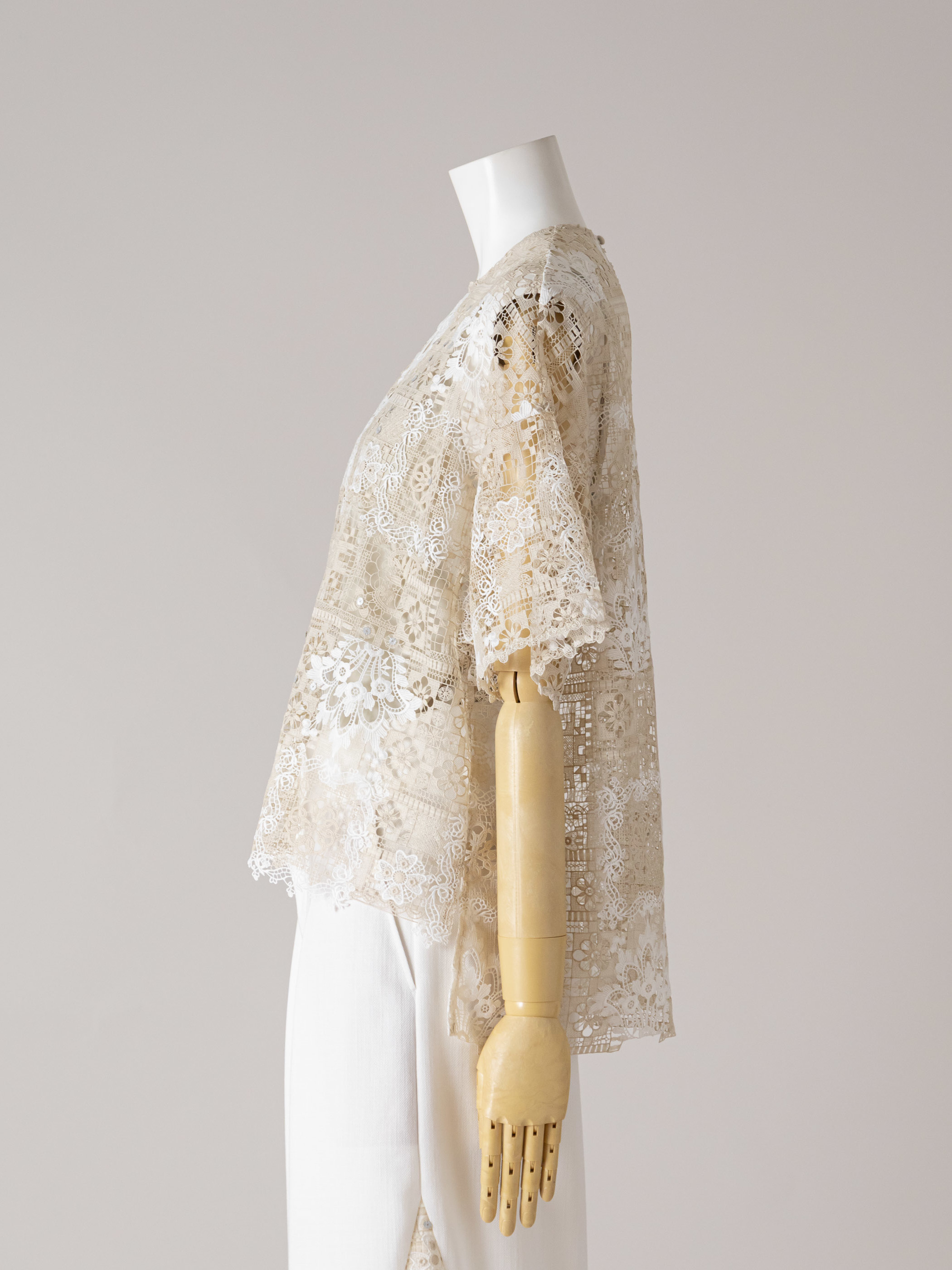 お花や幾何学柄が交差するエレガントなレースを全面にあしらったトップスです。