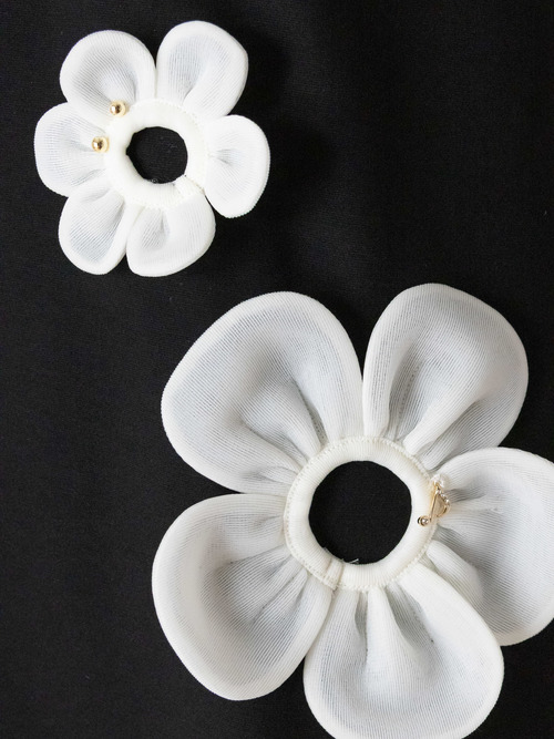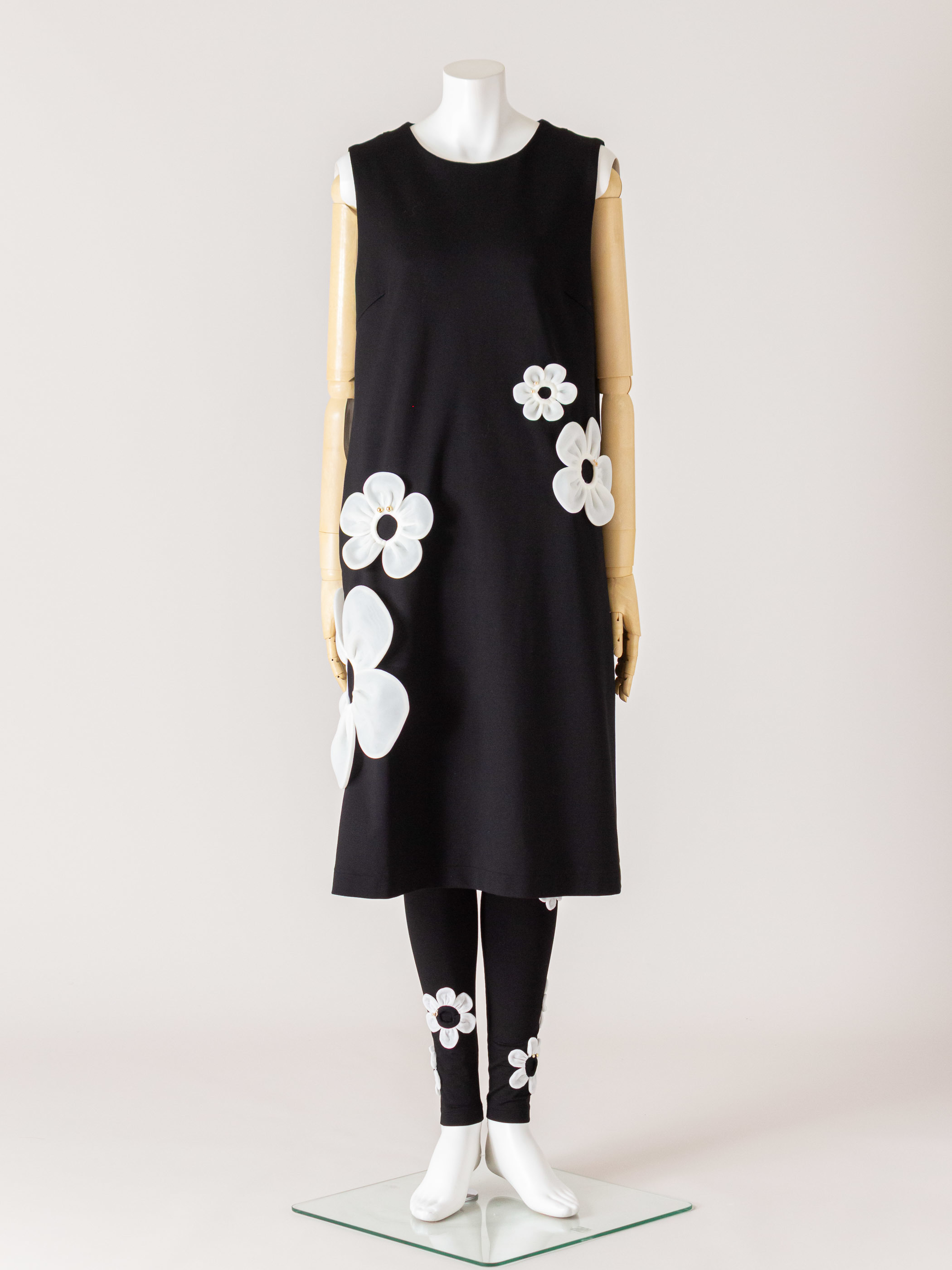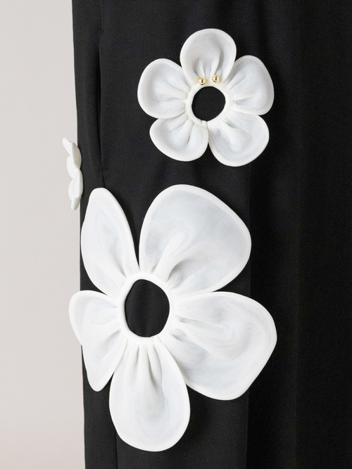 クラシックなラインのボディにSINGのお花を大胆に配置したワンピースです。