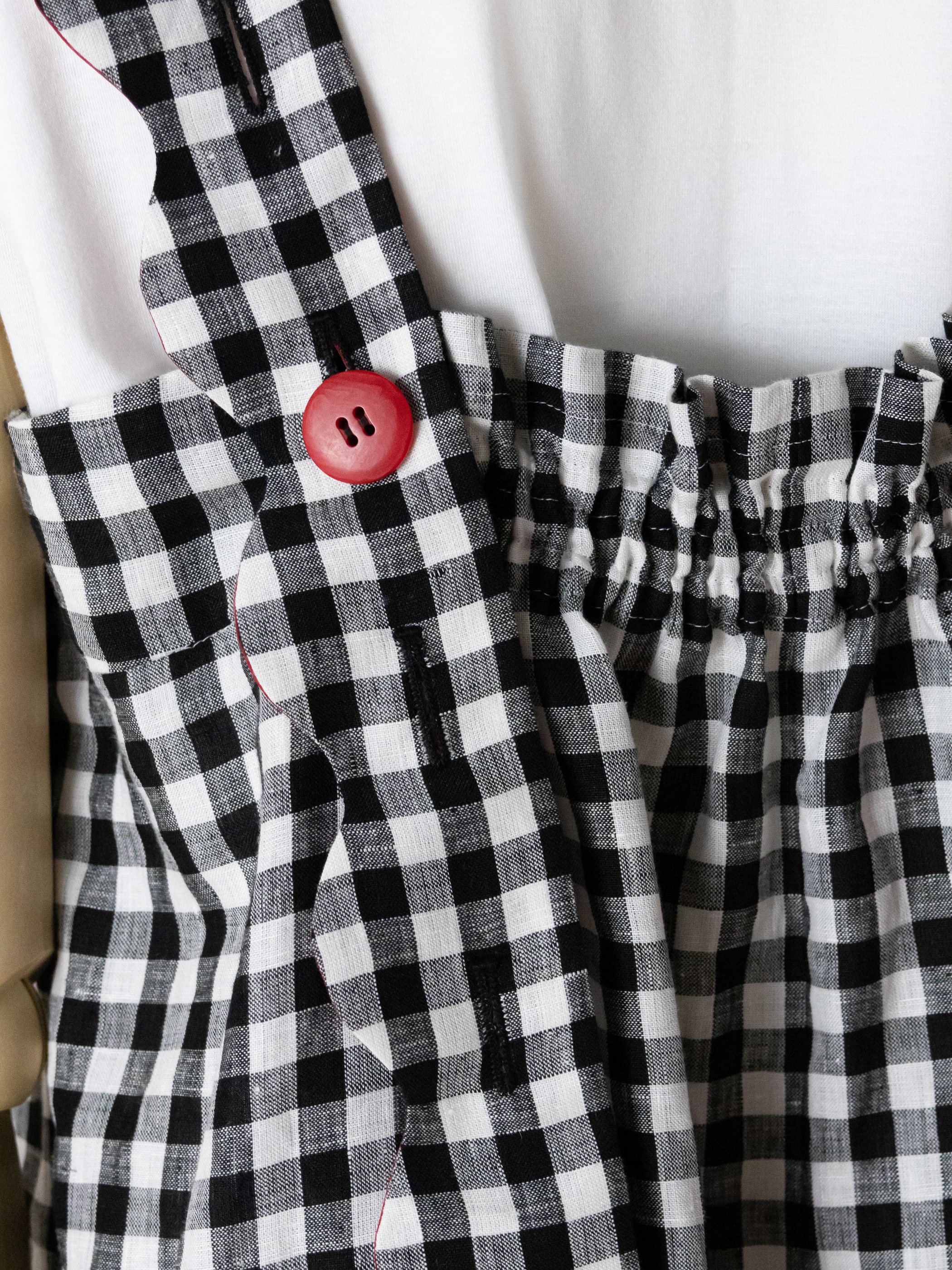 肩紐の長さは後ろのボタンで調節できます。