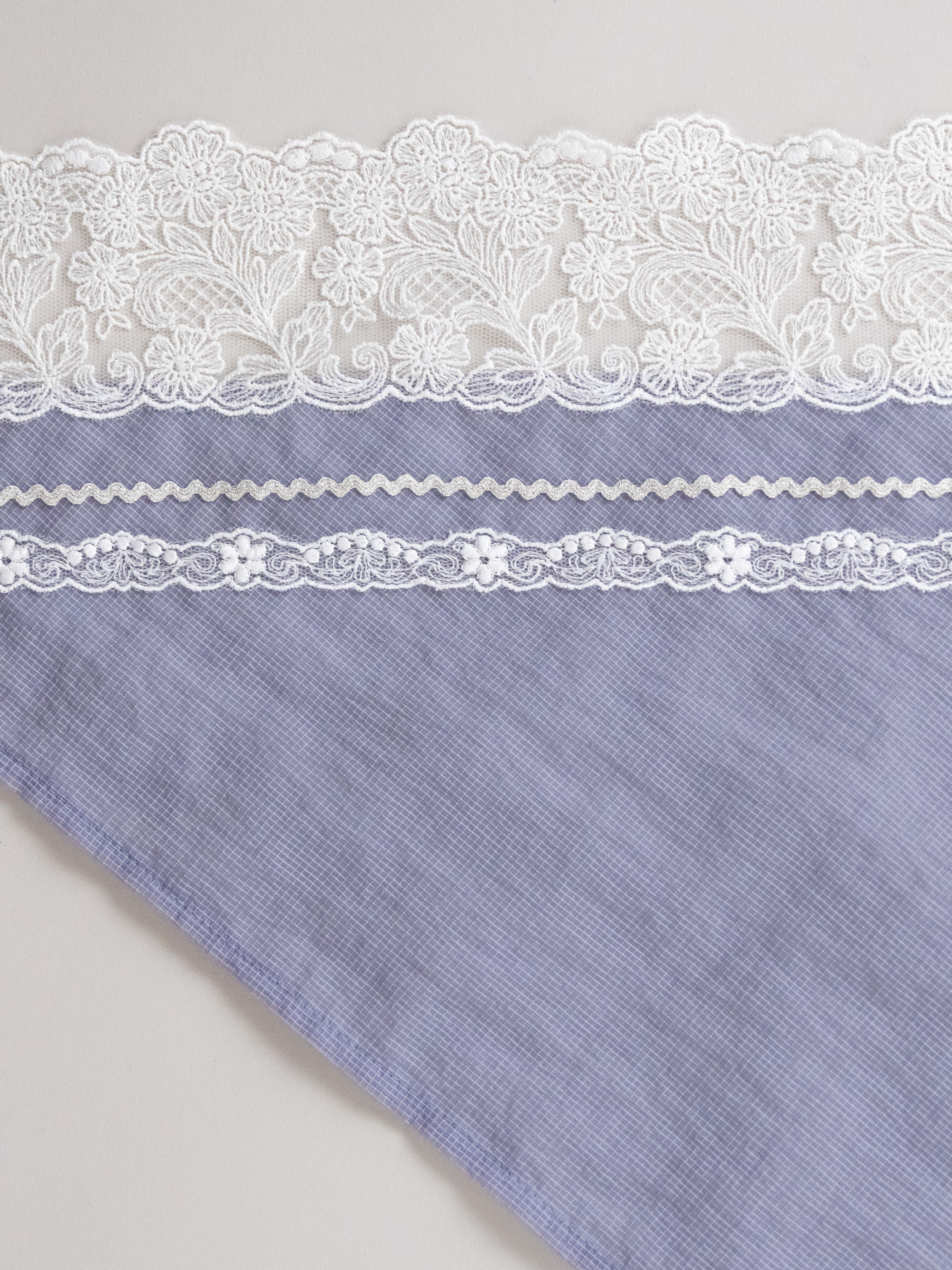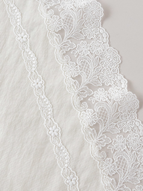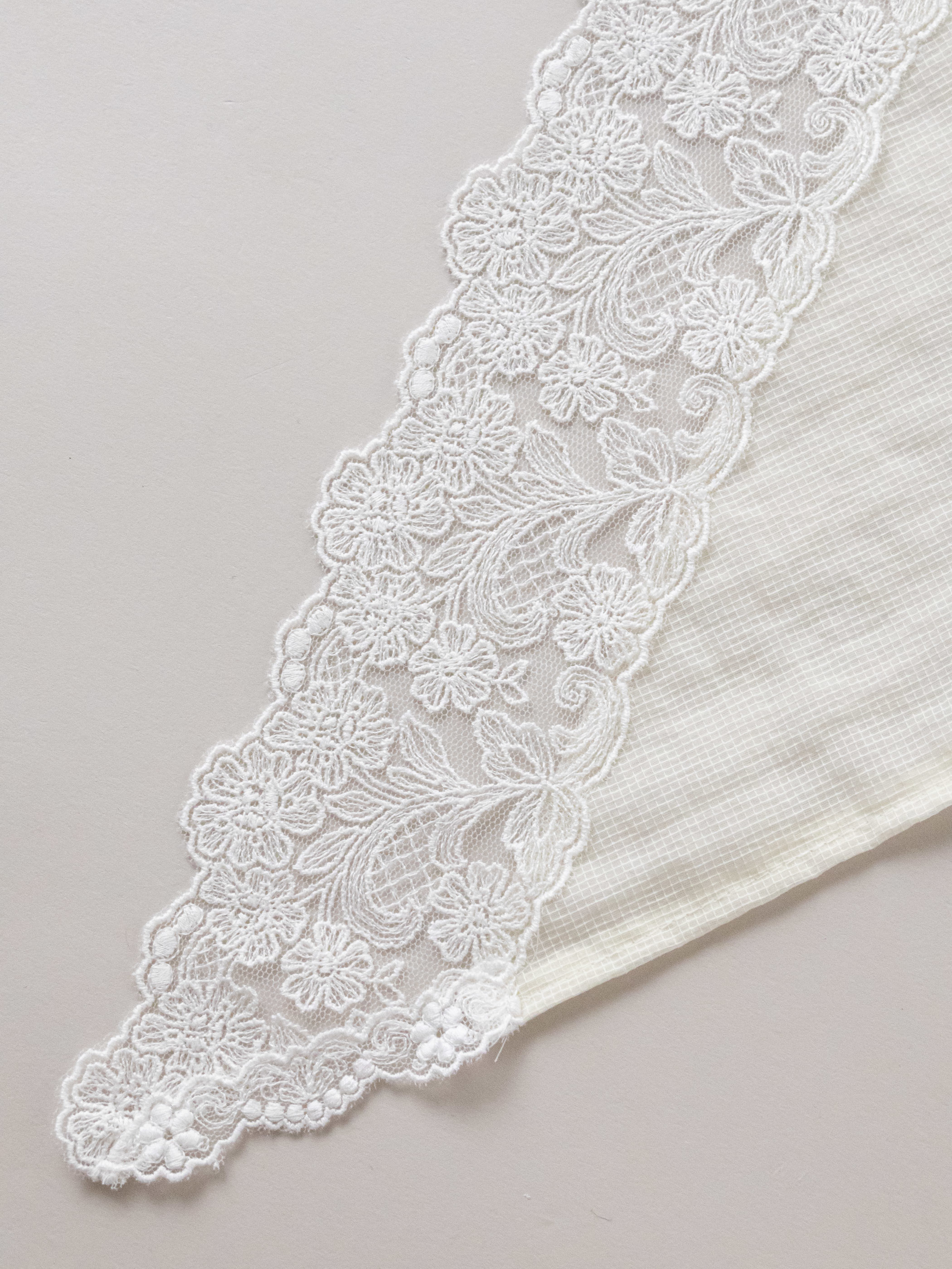 菱形カットのストールなので、巻き方に拘らず、レースが華やかに見せてくれます。