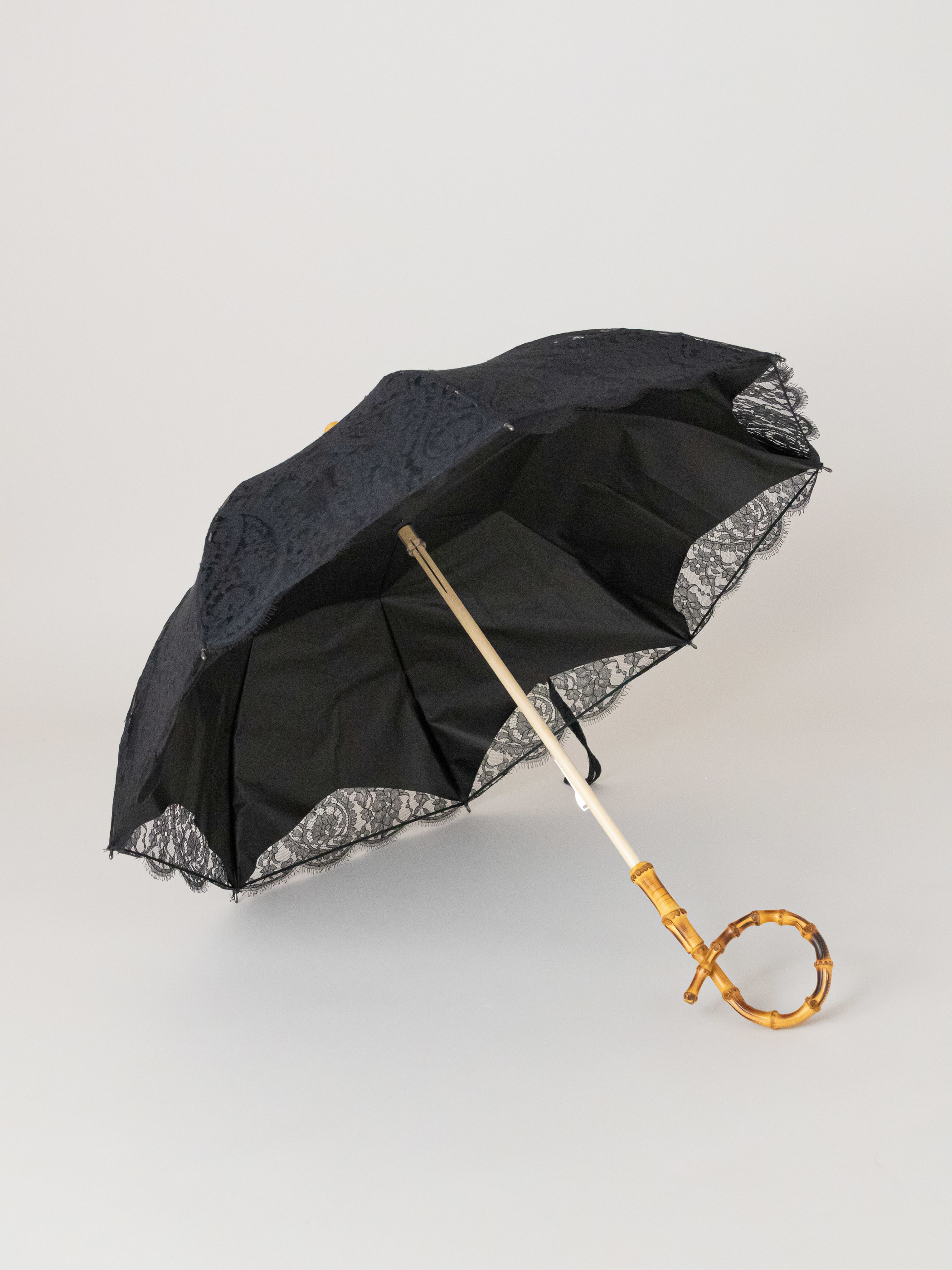 リバーレースのペイズリー柄をかわず張りに仕立てた日傘。