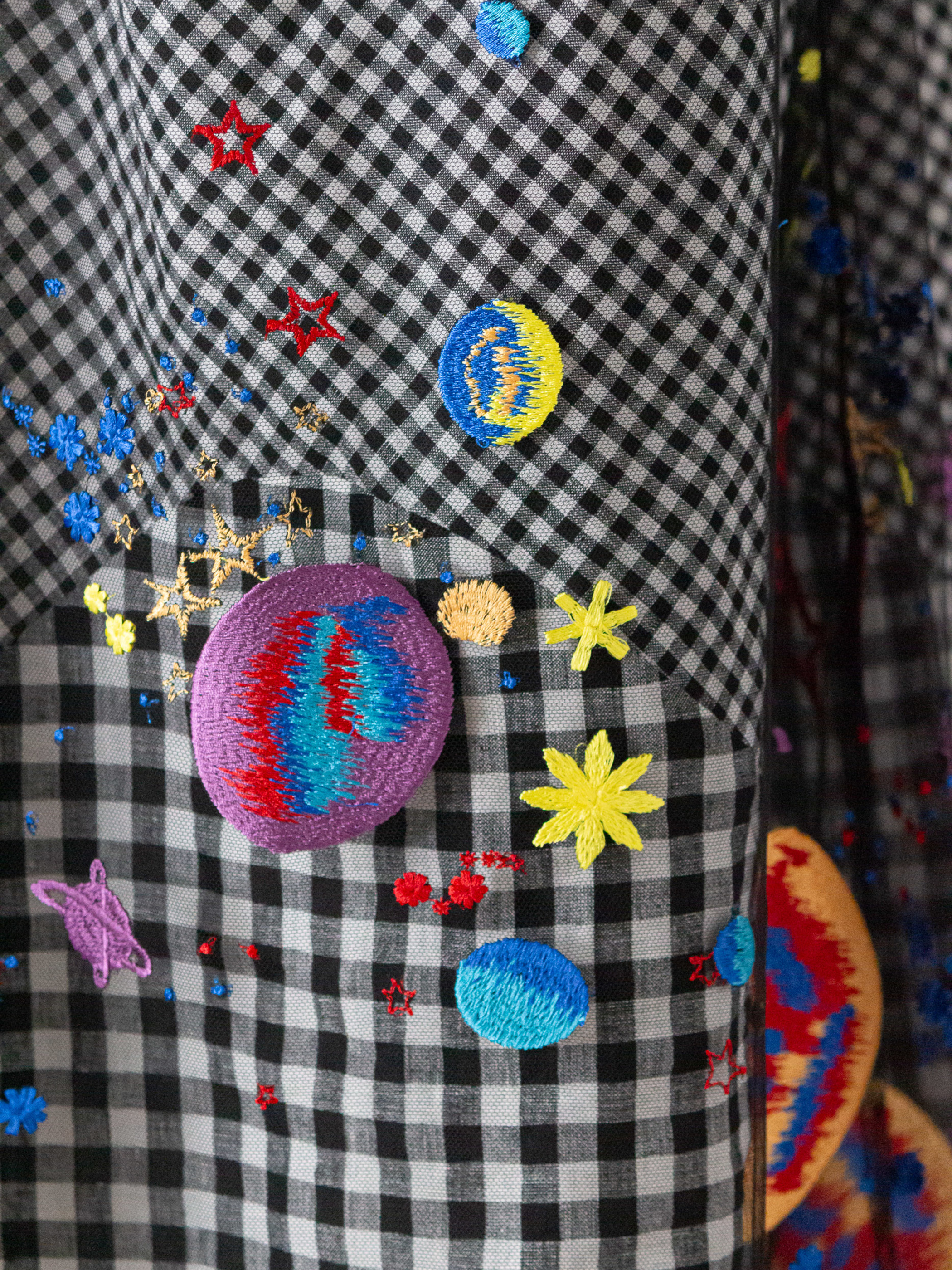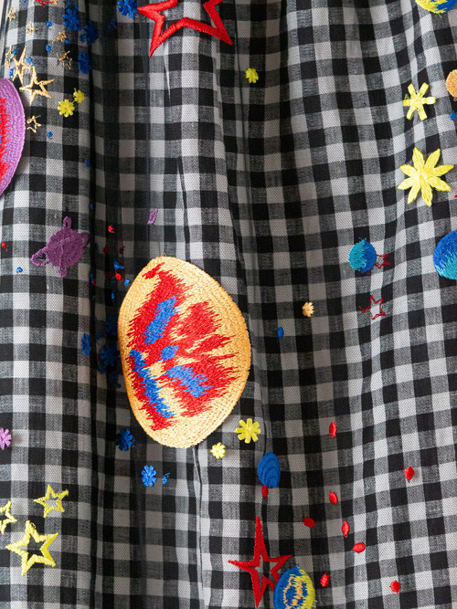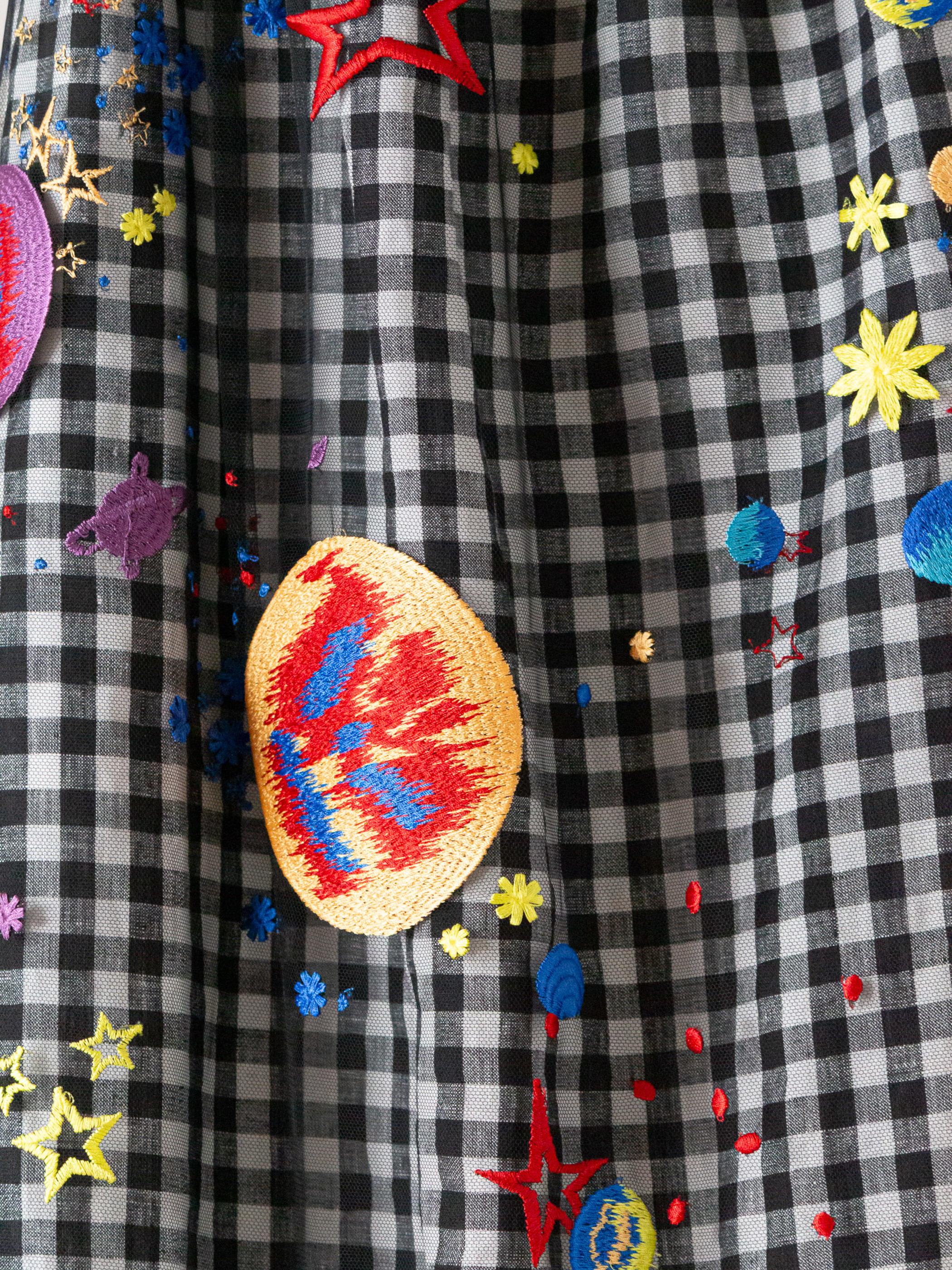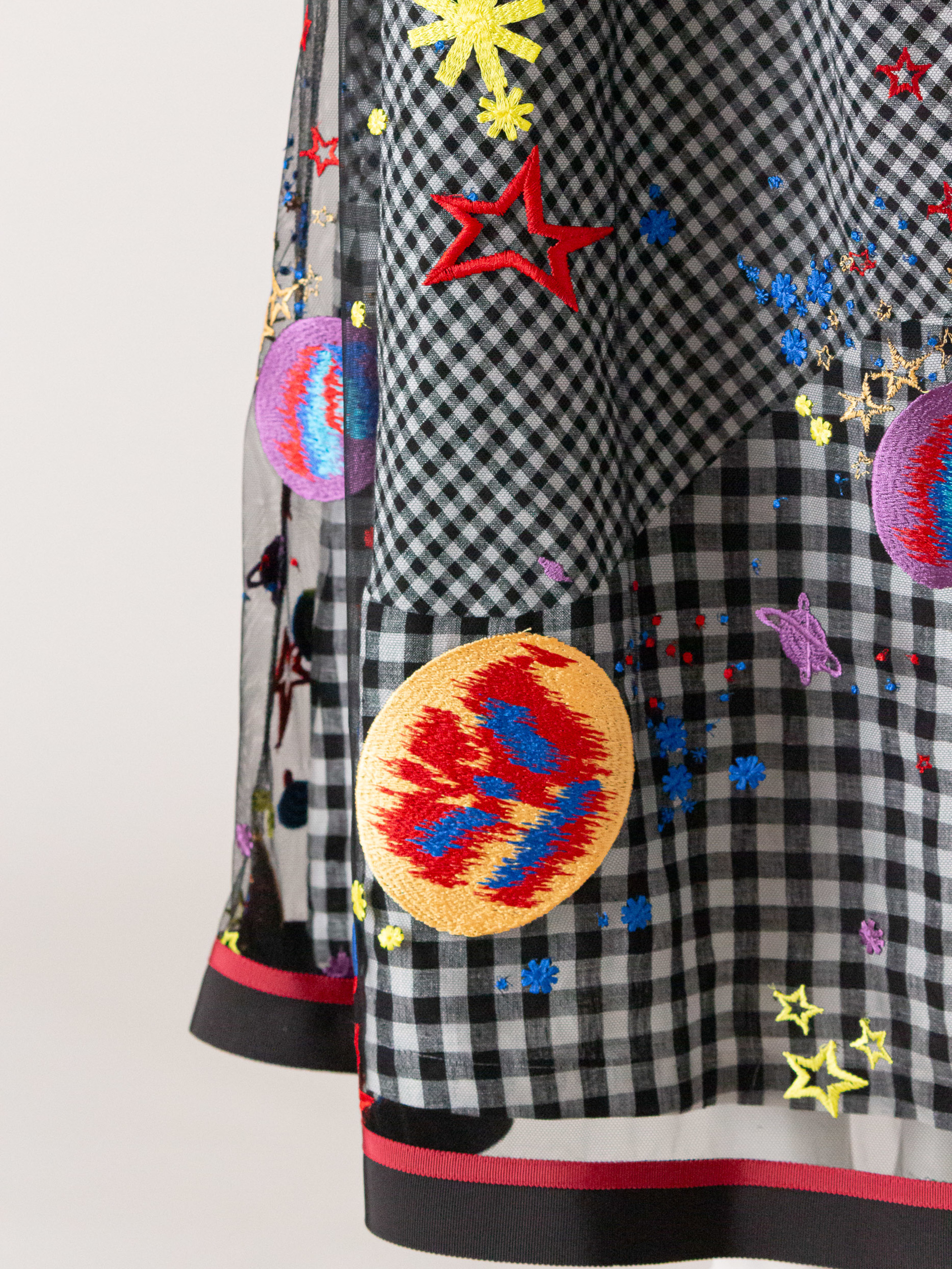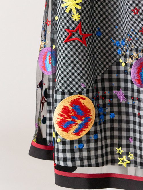 様々な柄が入った刺繍チュールを重ね、動きが出るようデザインです。