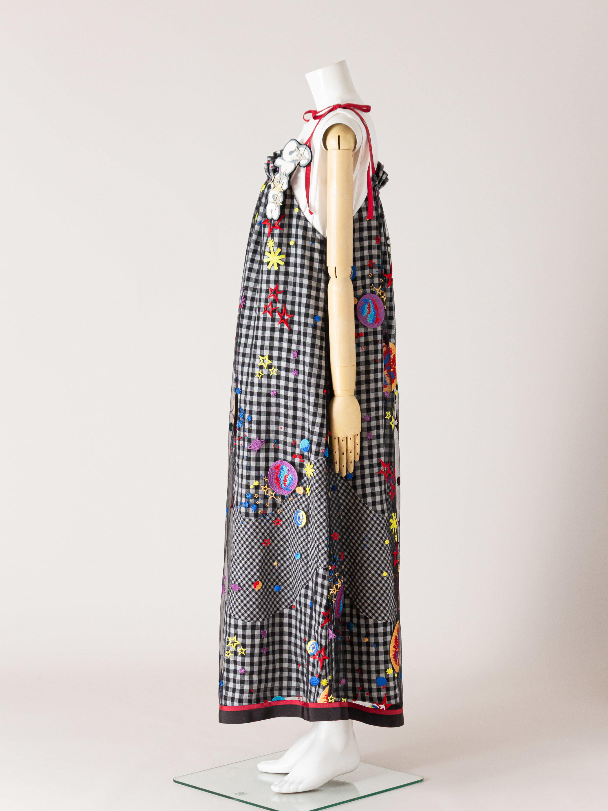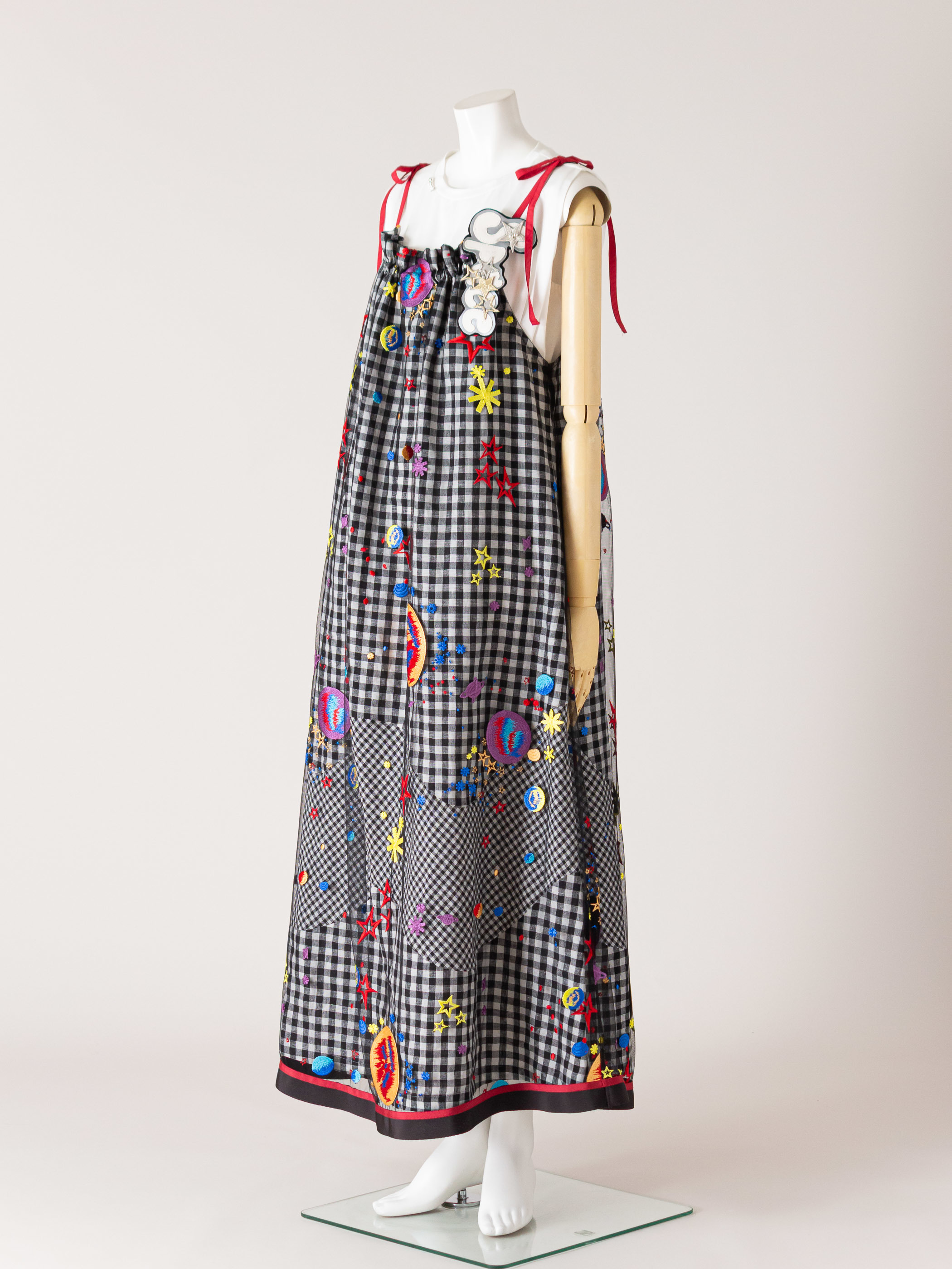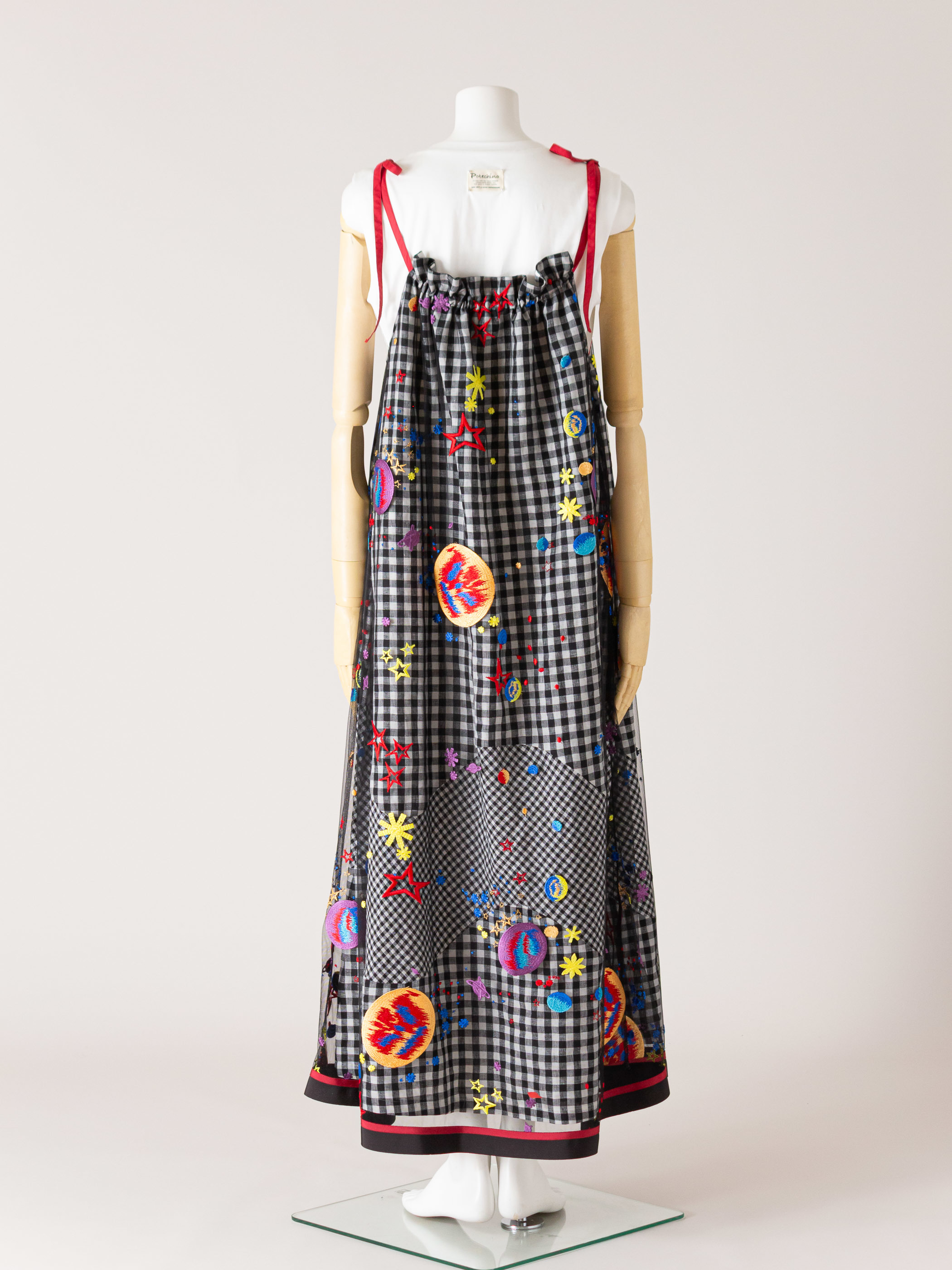 取り外し可能な「Space」ブローチ付きで、肩紐で丈を調整していただけます。