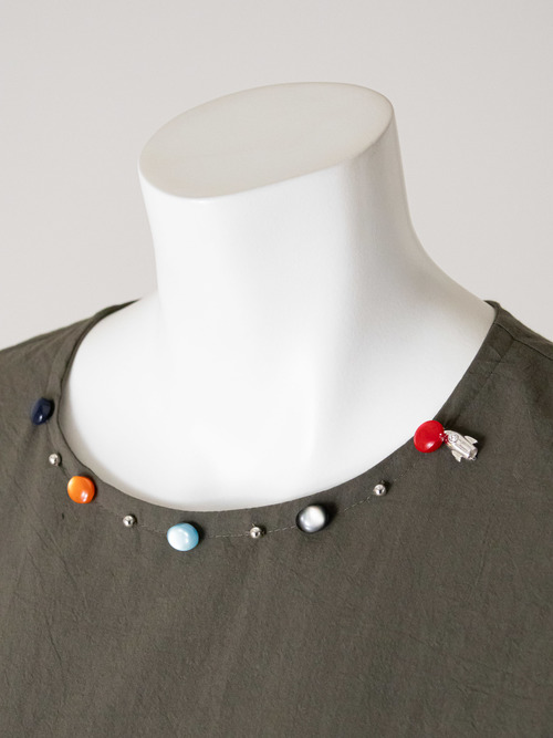 土星の輪をイメージした切り替えに、裾はチュールで涼しげに仕上げました。