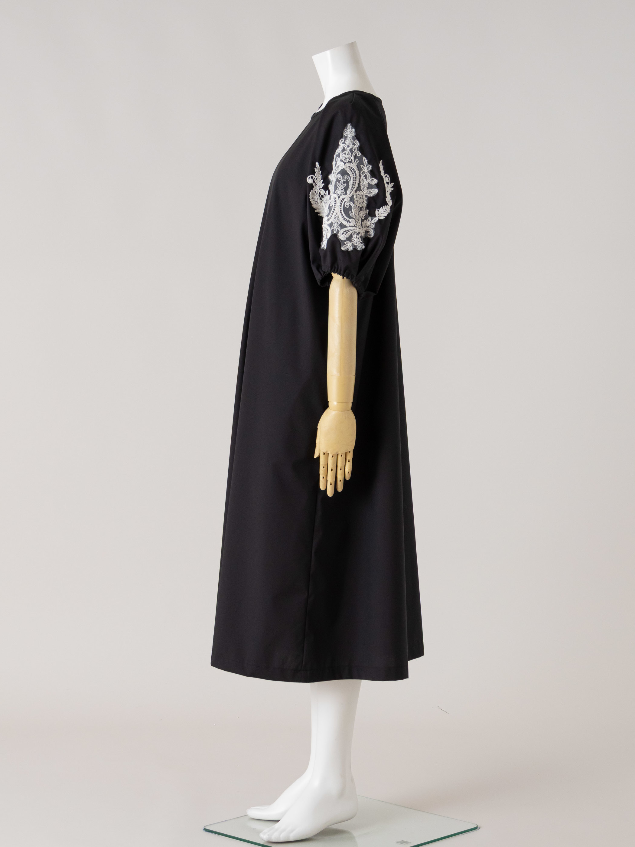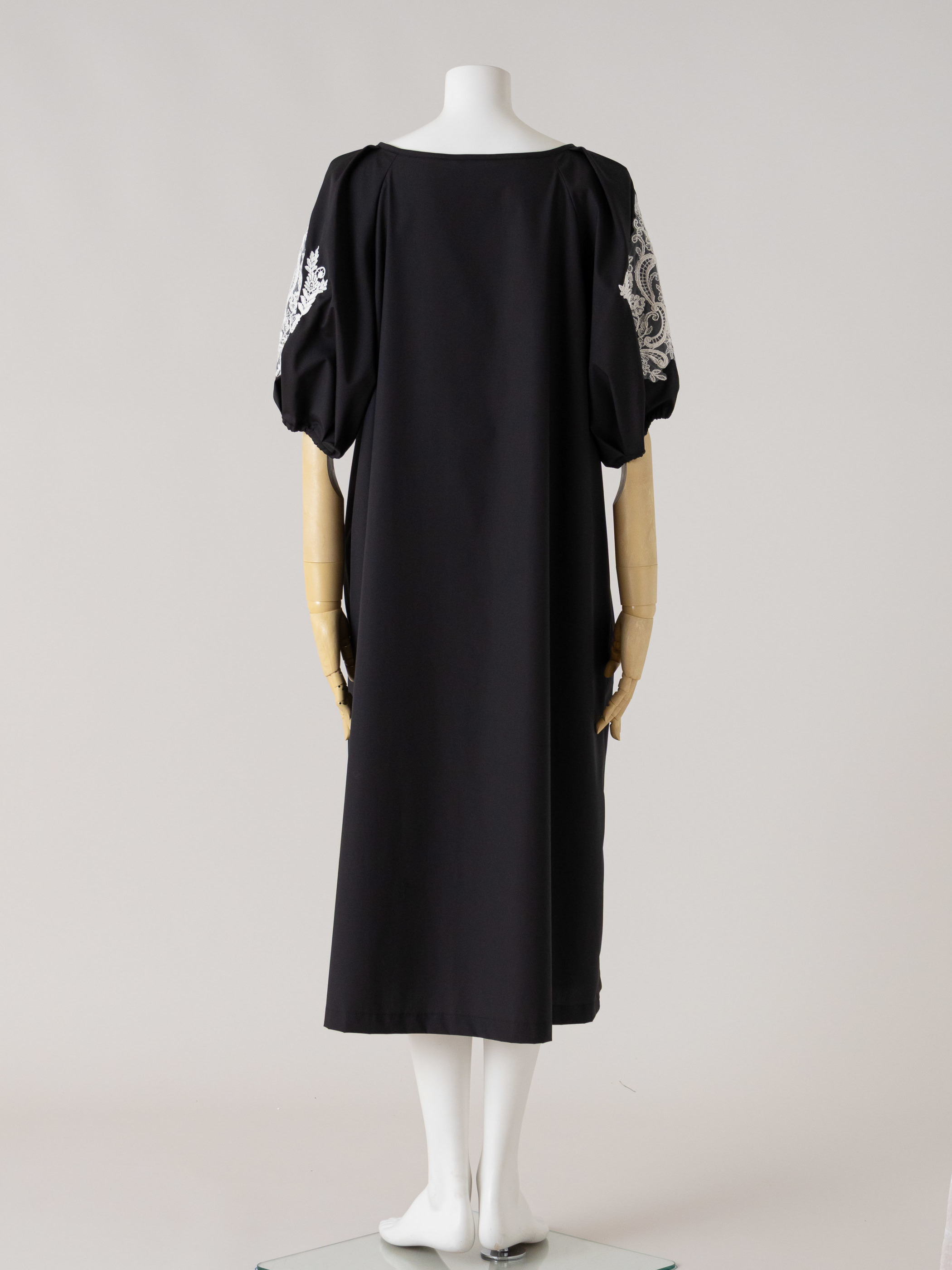 袖のレースがポイントで、一枚でも存在感のあるリアルクローズのワンピースです。