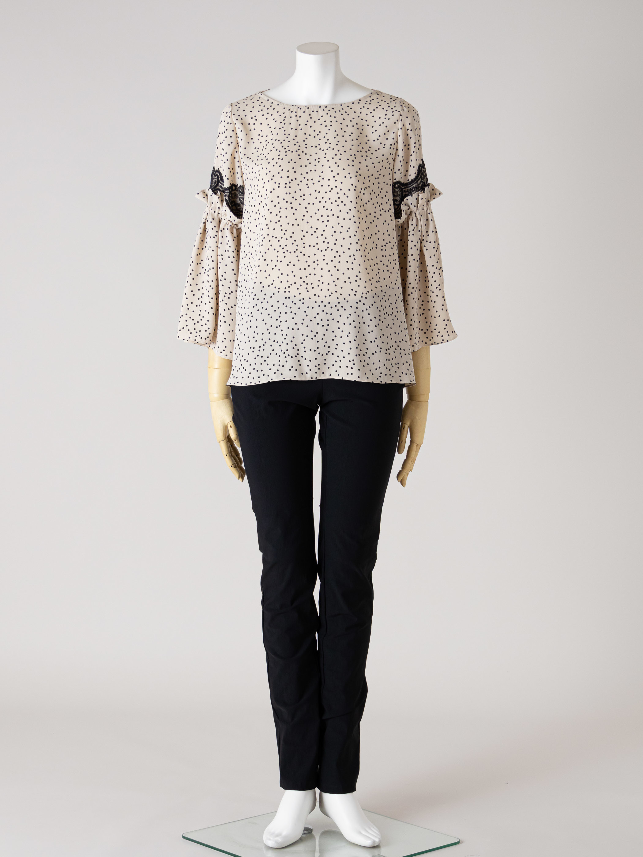 イージーケア素材が生み出すスレンダーなシルエットに、上質感のあるレース使いやディテールを加えています。
