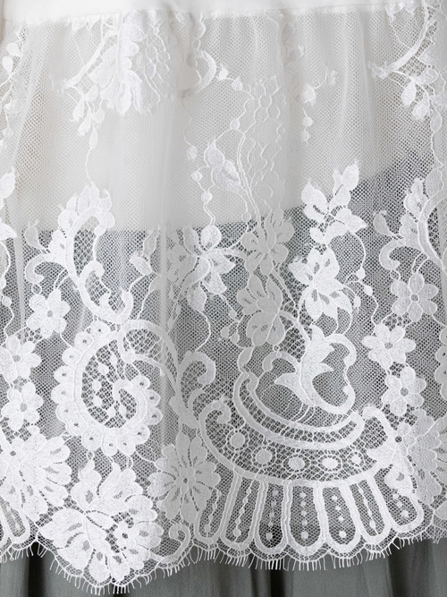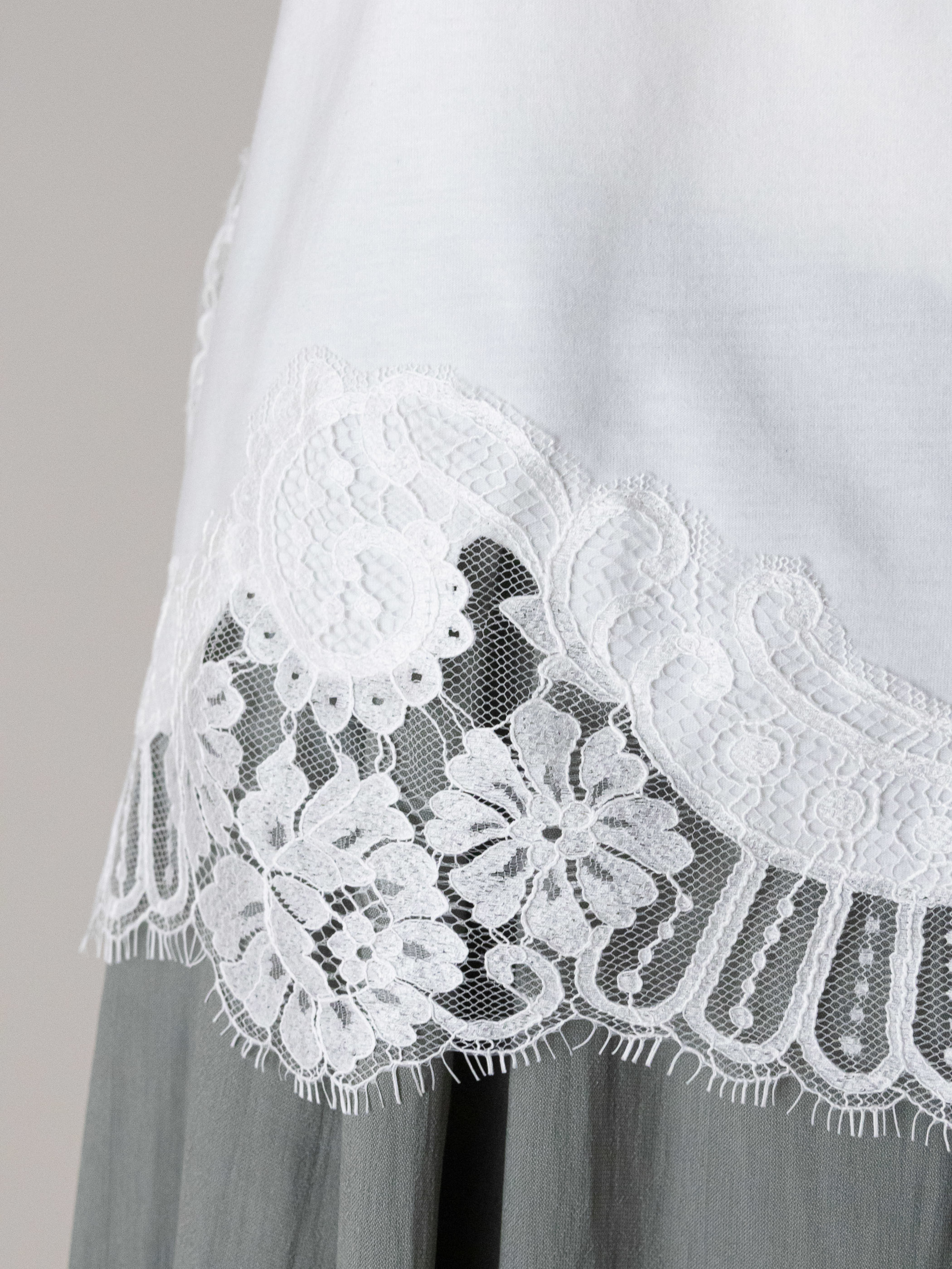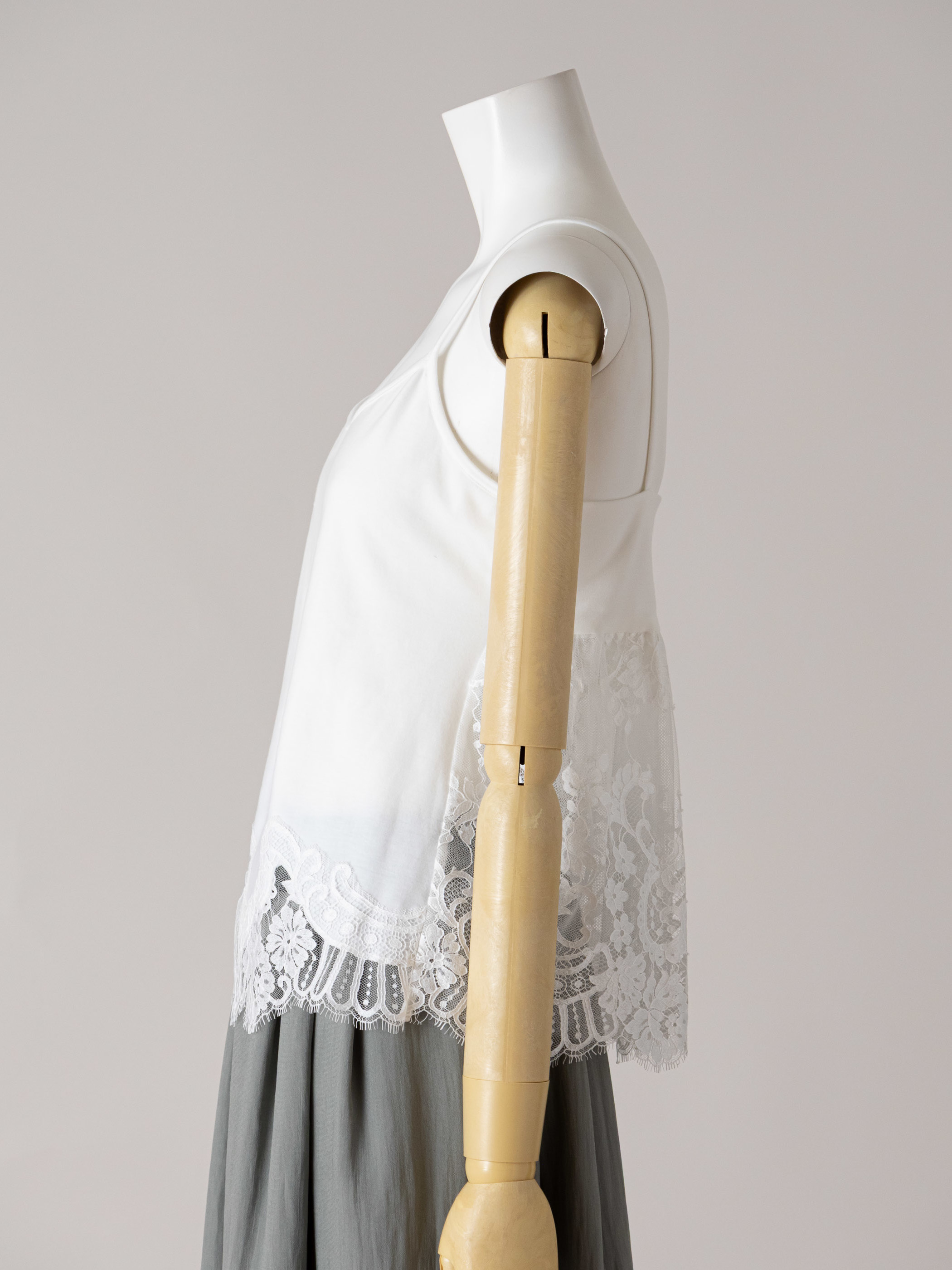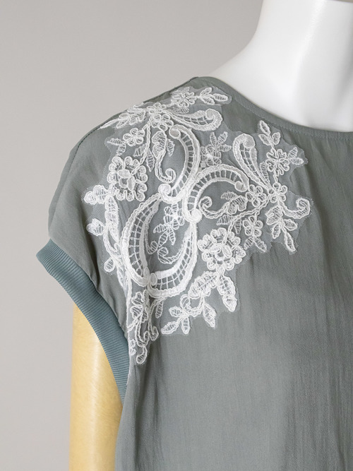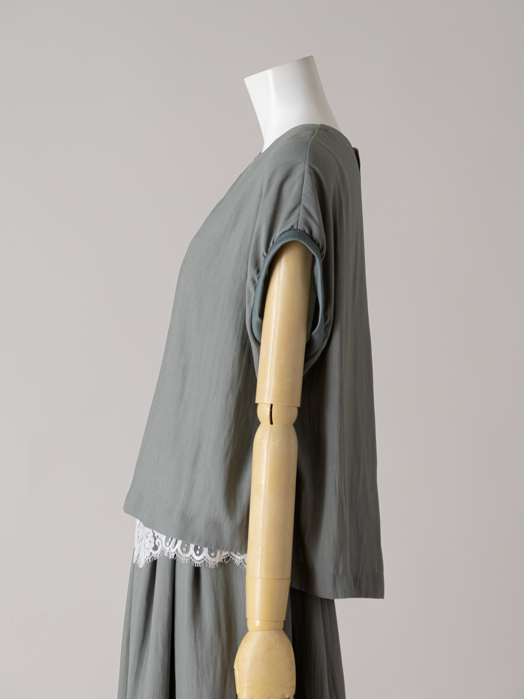 イージーケア素材が生み出すスレンダーなシルエットに、上質感のあるレース使いやディテールを加えています。