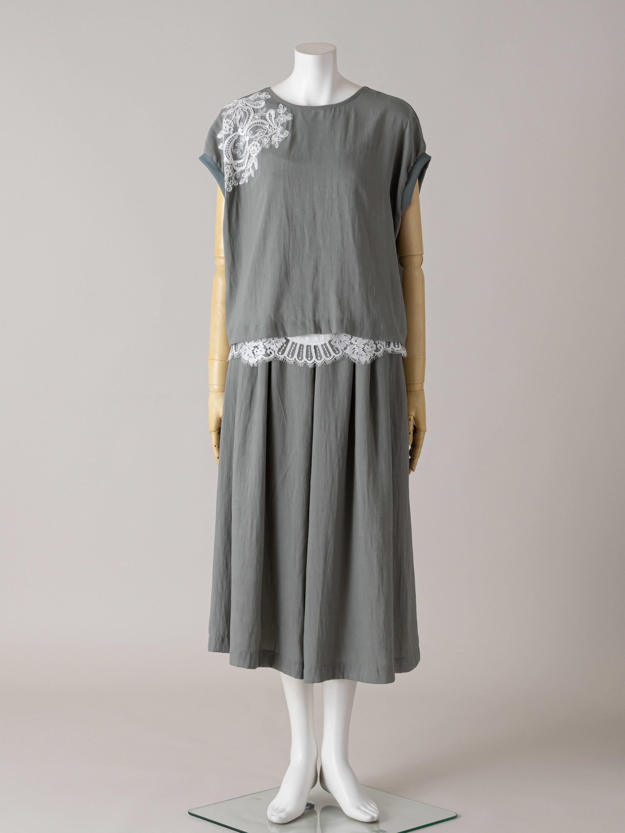 イージーケア素材が生み出すスレンダーなシルエットに、上質感のあるレース使いやディテールを加えています。