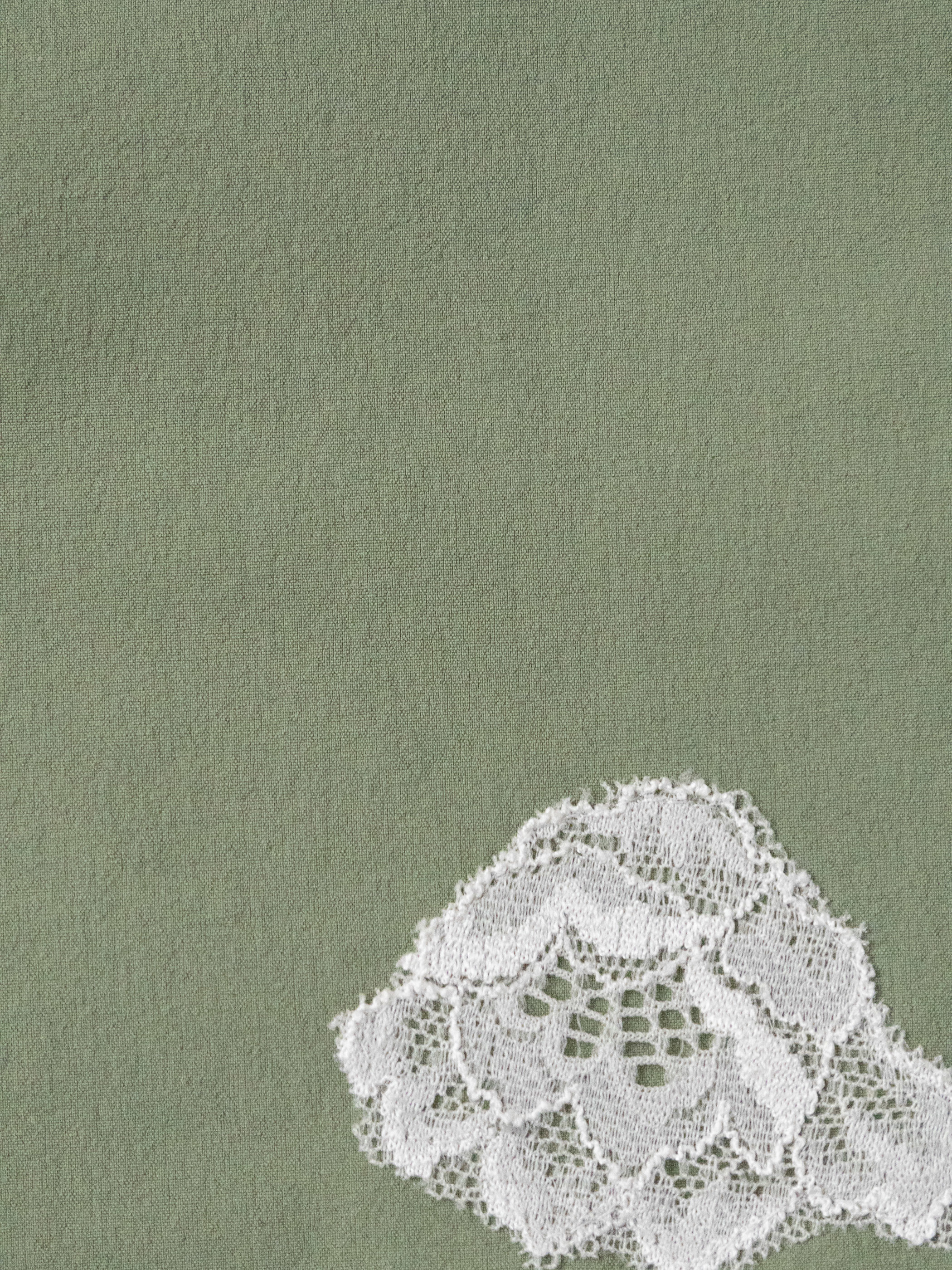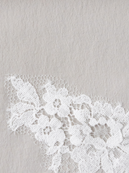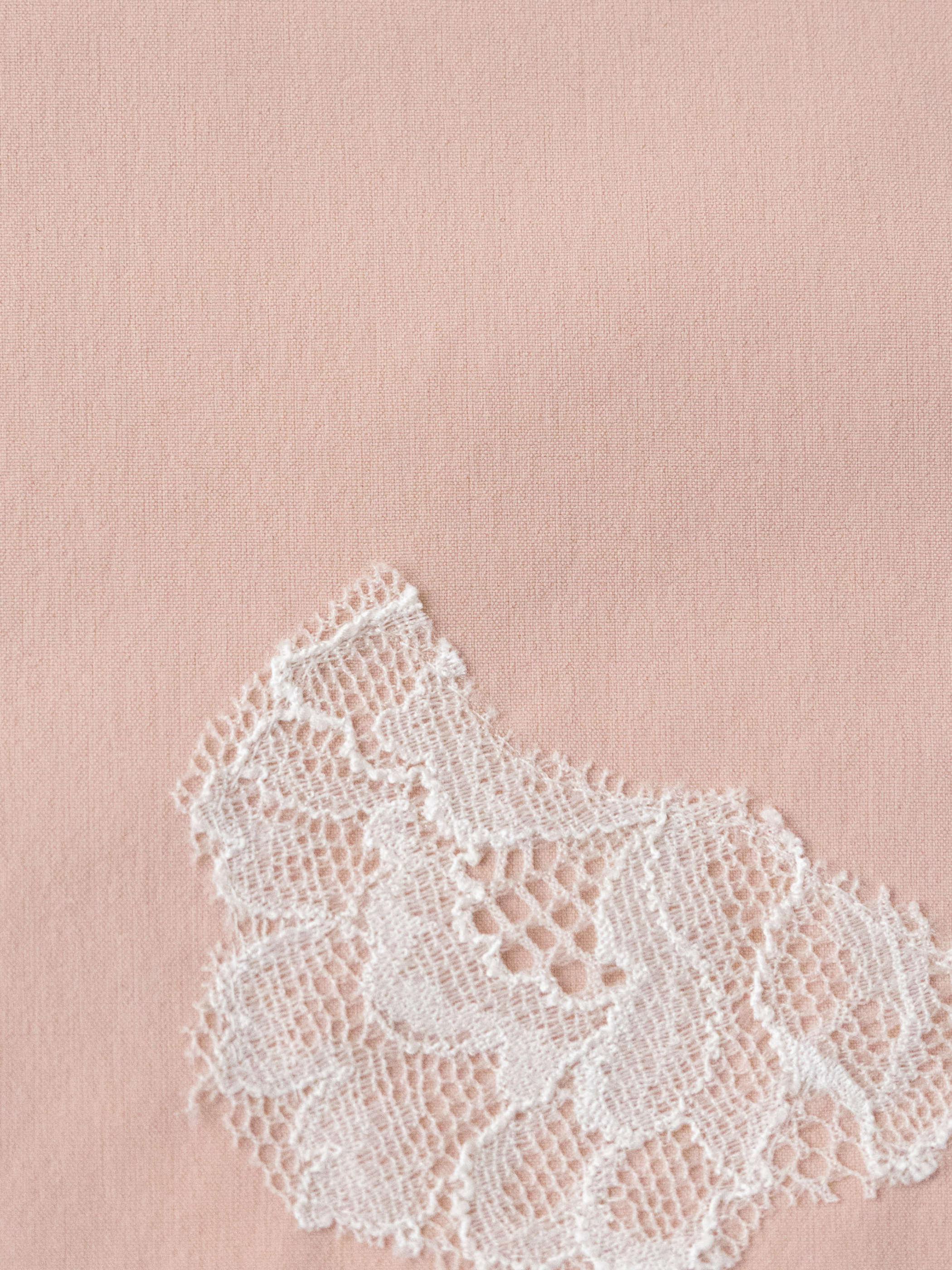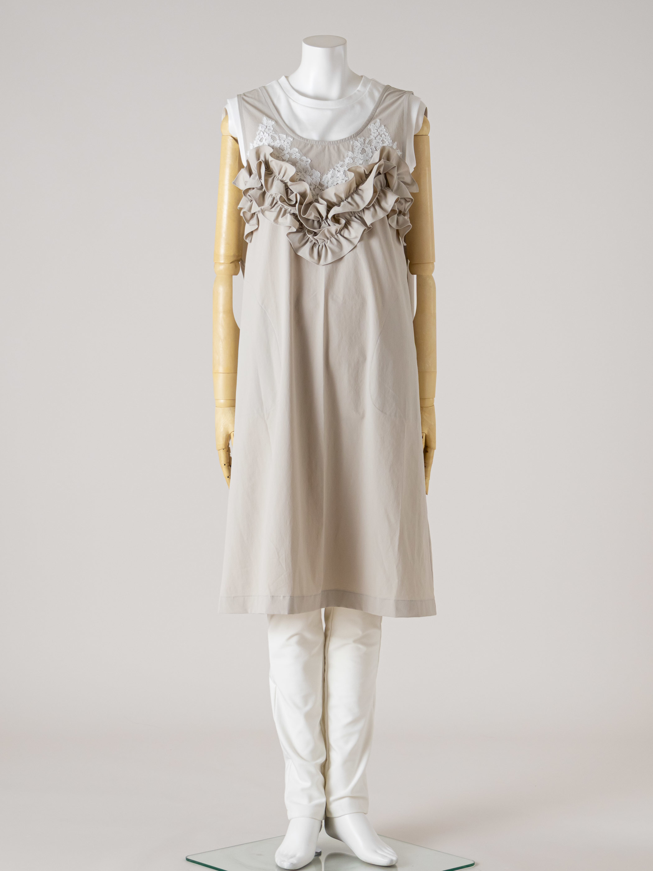 胸元のフリルとレースが華やかなエプロンに仕立て上げました。