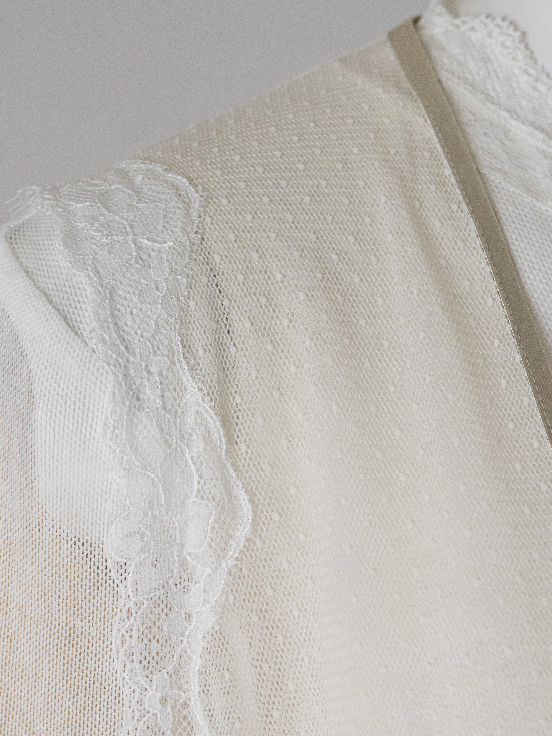 軽やかな透明感がポイントで、ジャケットインナーやカットソーでレイヤードスタイルにコーディネートを楽しんでいただけます。