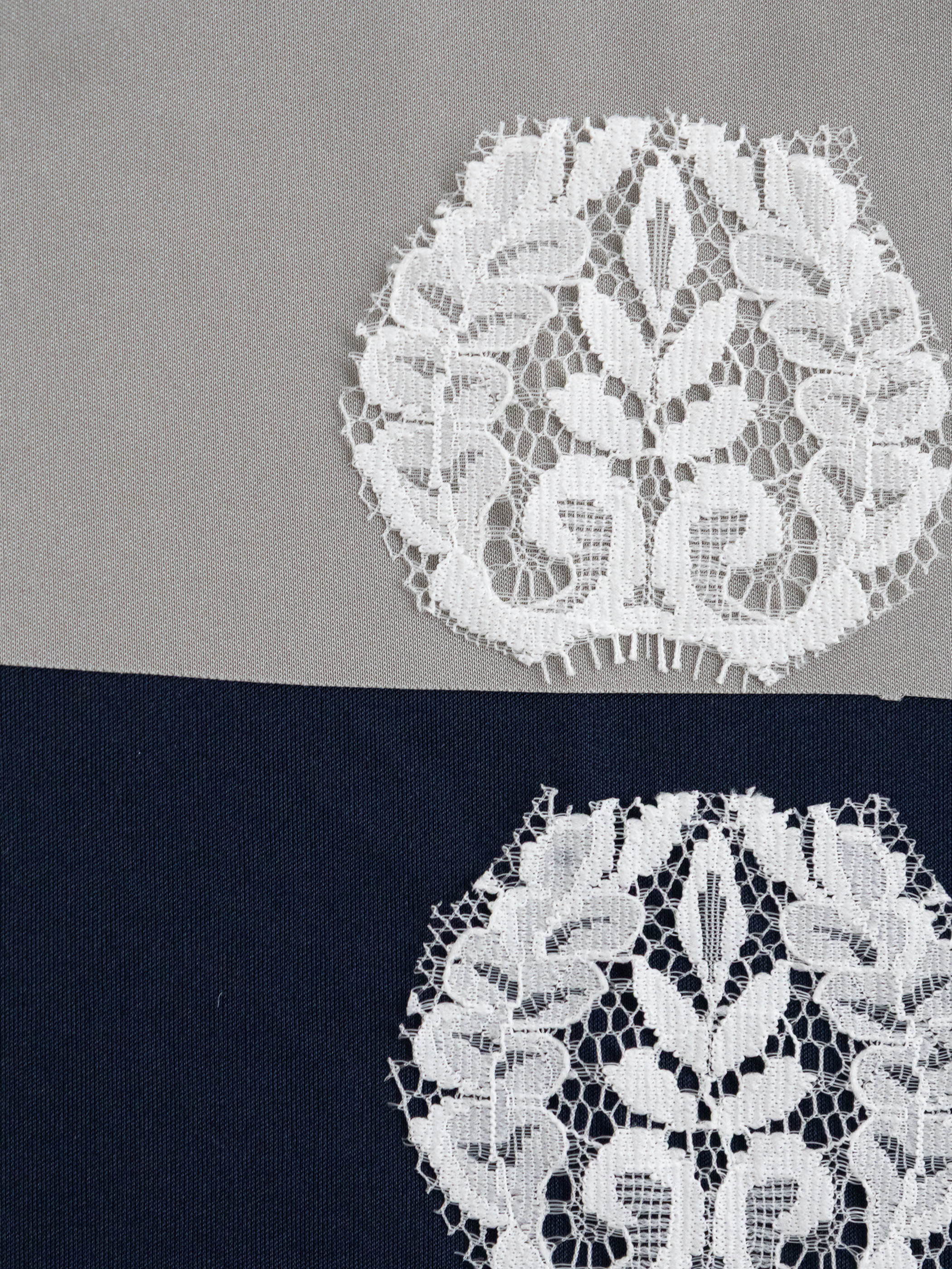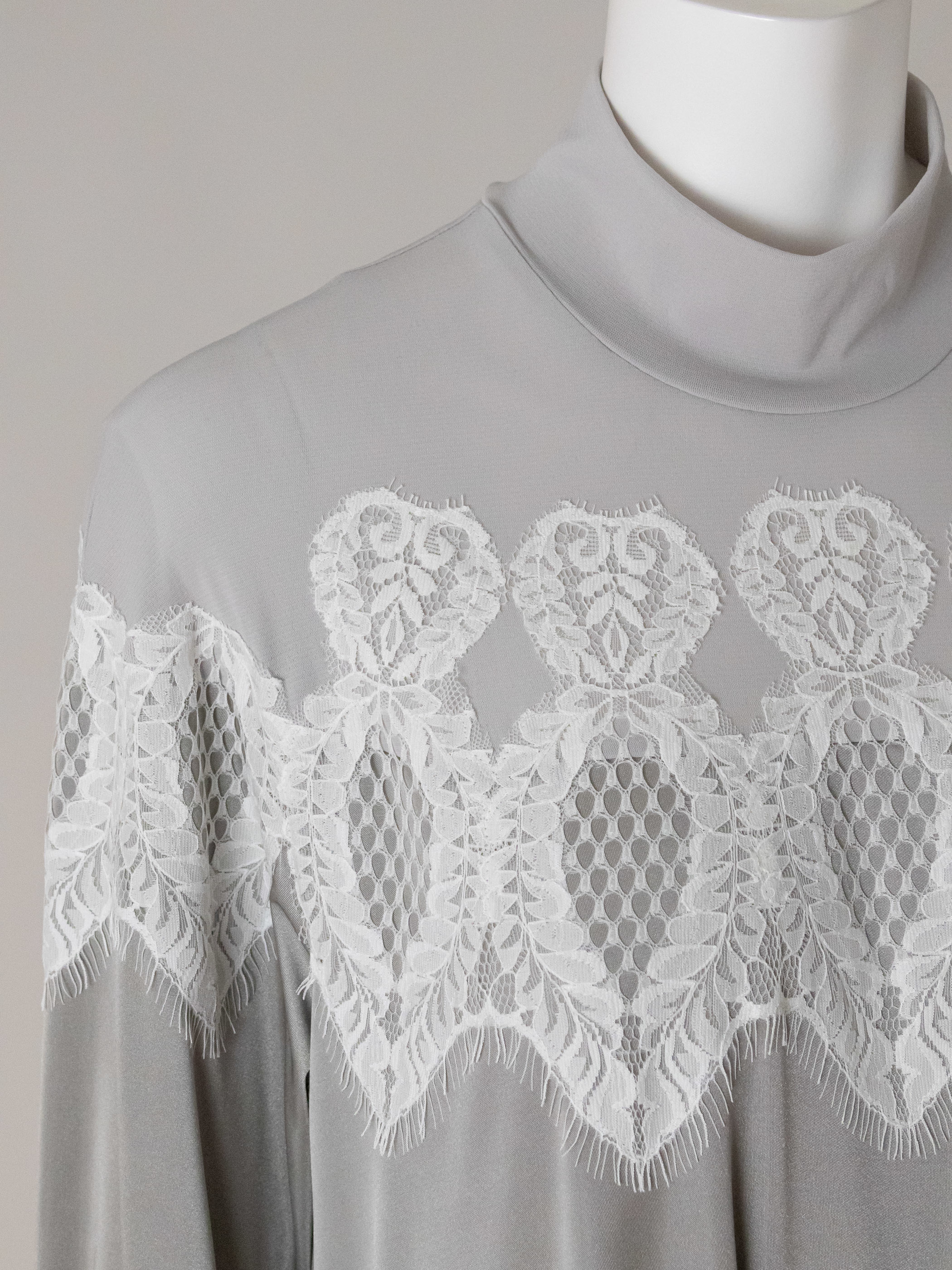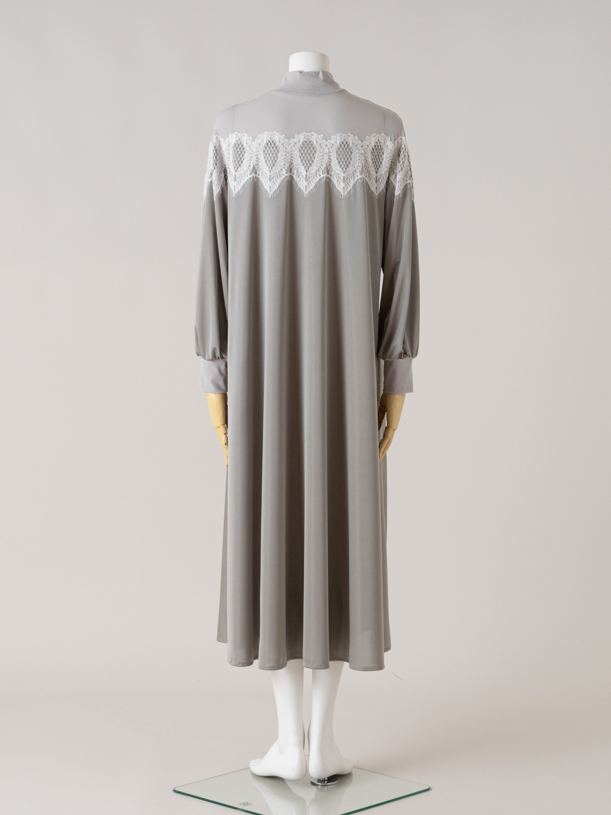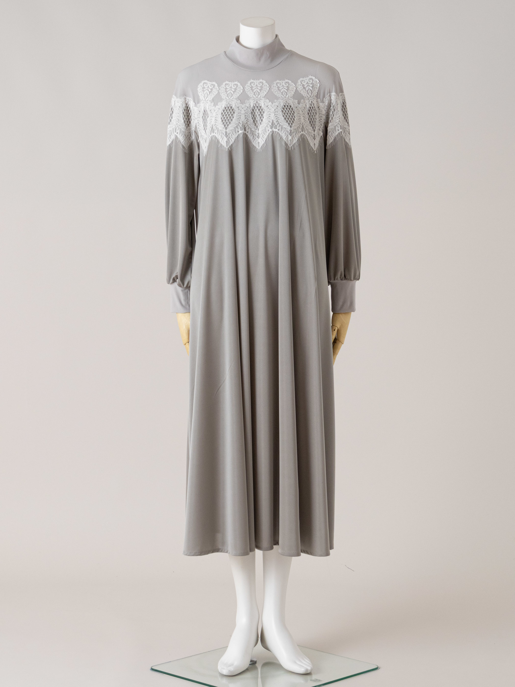 イージーケア素材が生み出すスレンダーなシルエットに、上質感のあるレース使いやディテールを加えています。